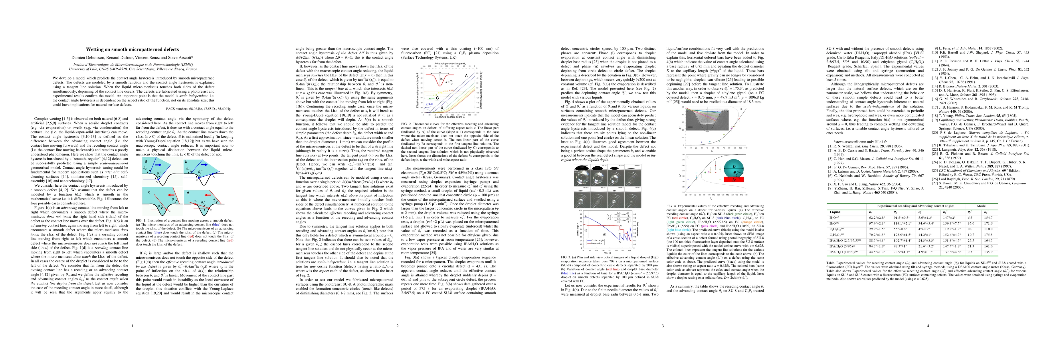 We develop a model which predicts the contact angle hysteresis introduced by smooth micropatterned defects. The defects are modeled by a smooth function and the contact angle hysteresis is explained using a tangent line solution. When the liquid micro-meniscus touches both sides of the defect simultaneously, depinning of the contact line occurs. The defects are fabricated using a photoresist and experimental results confirm the model. An important point is that the model is scale-independent, i.e. the contact angle hysteresis is dependent on the aspect ratio of the function, not on its absolute size; this could have implications for natural surface defects.