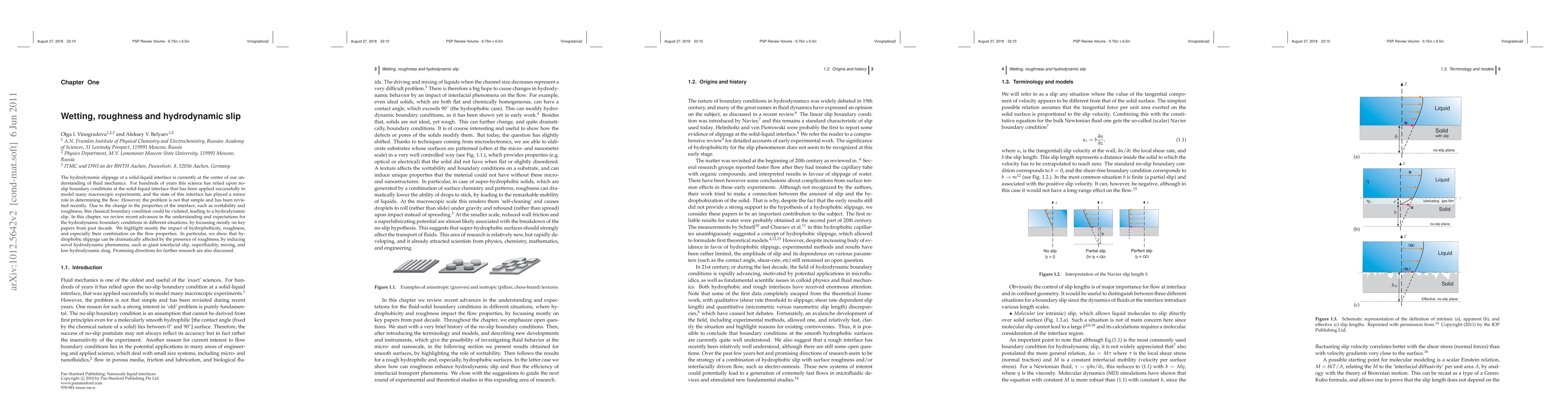 This paper reviews recent advancements in understanding hydrodynamic slip at solid-liquid interfaces, emphasizing how wettability and surface roughness can violate classical no-slip boundary conditions, leading to phenomena like giant interfacial slip and low drag. It highlights the significant impact of hydrophobicity and roughness on fluid mechanics.
