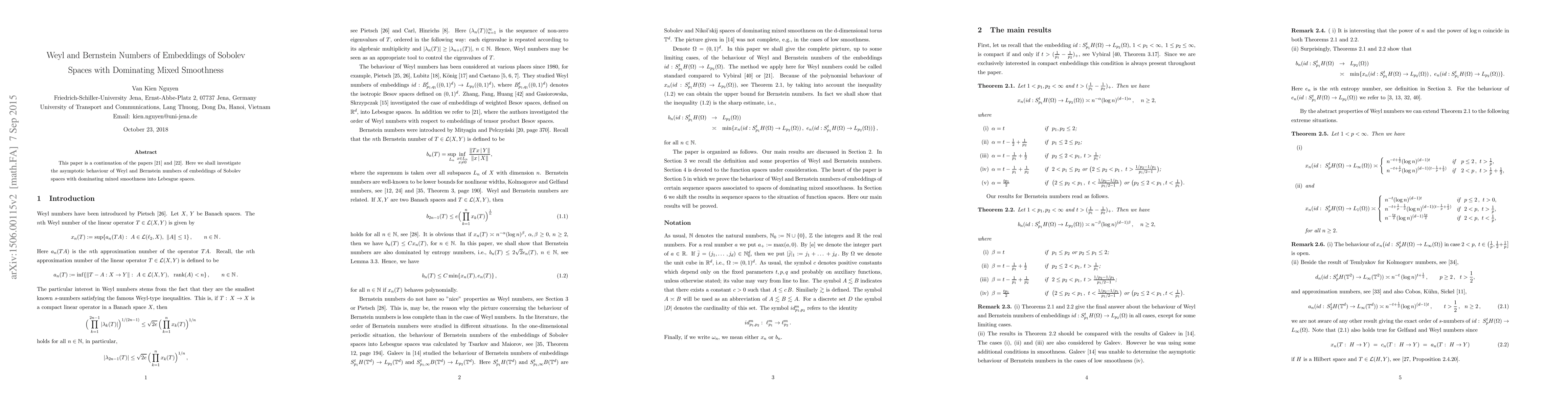 The paper presents novel asymptotic estimates for Weyl and Bernstein numbers, offering a deeper insight into the approximation properties of Sobolev spaces with dominating mixed smoothness.