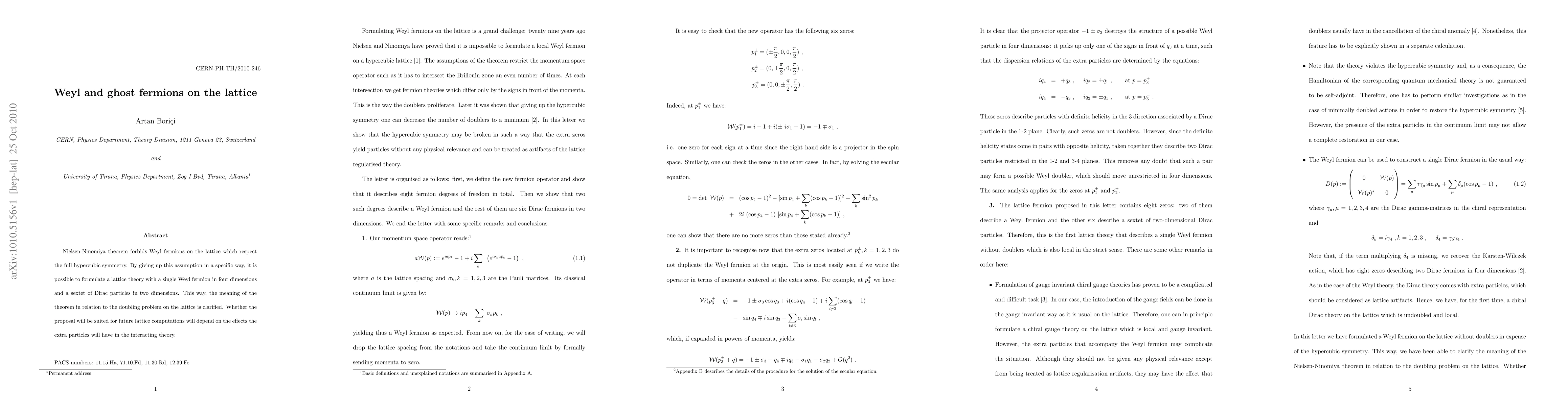 Researchers propose a lattice theory that allows for a single Weyl fermion in 4D and a sextet of Dirac particles in 2D, clarifying the Nielsen-Ninomiya theorem's implications on the lattice.