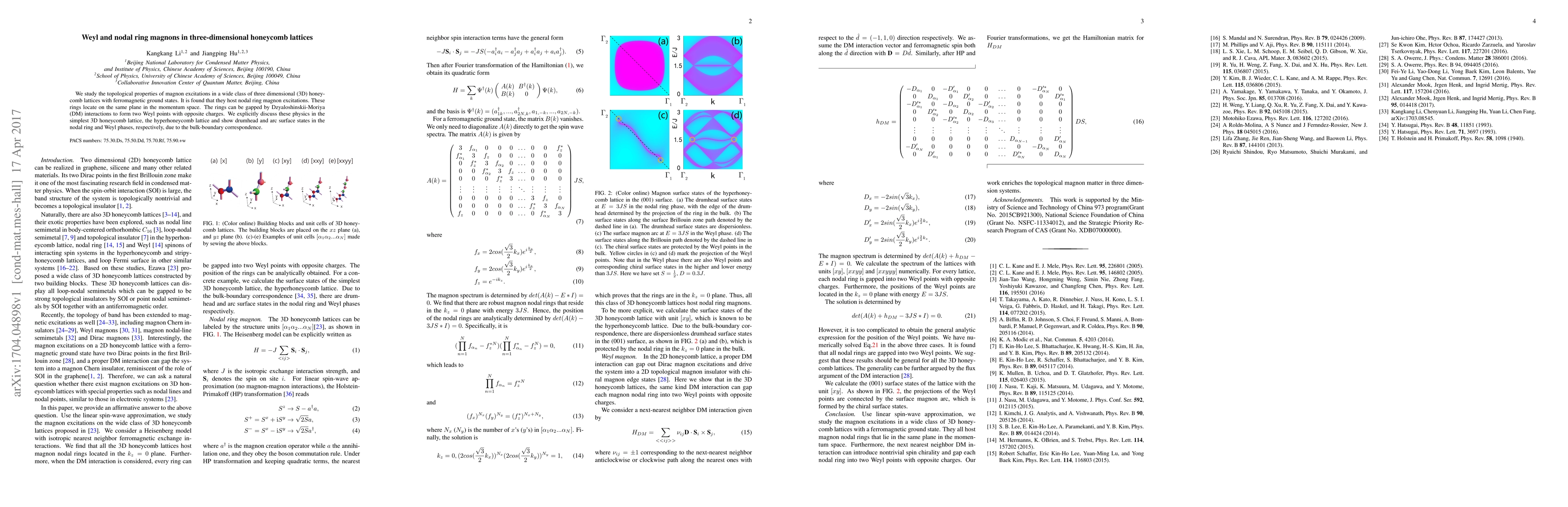 This paper investigates the topological properties of magnon excitations in 3D honeycomb lattices, revealing nodal ring magnons and their transformation into Weyl points via Dzyaloshinskii-Moriya interactions. The study highlights the emergence of drumhead and arc surface states in the nodal ring and Weyl phases, respectively, through the bulk-boundary correspondence.