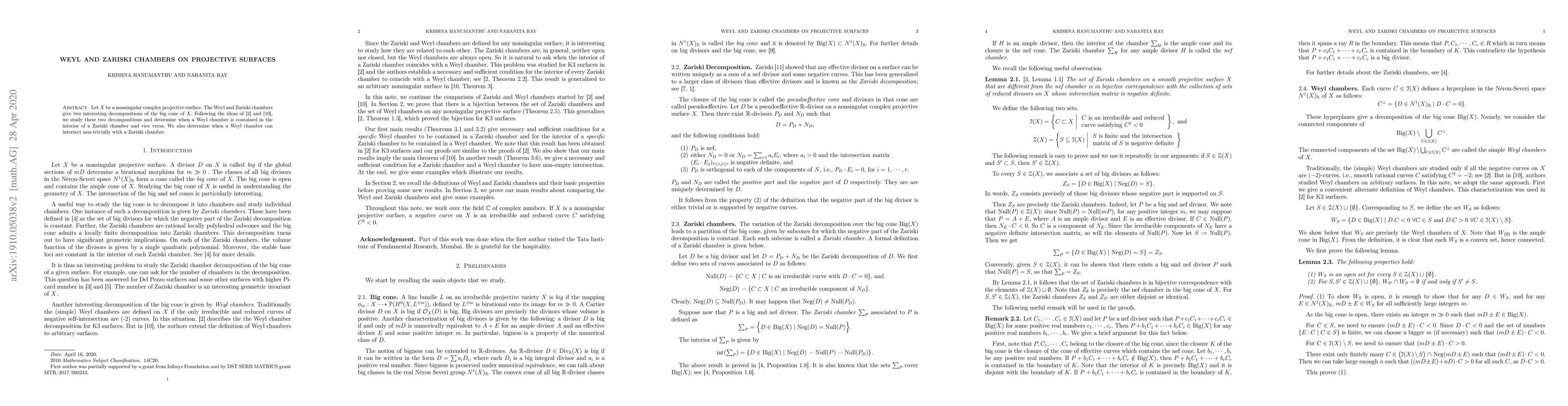 This paper investigates the decompositions of the big cone of a nonsingular complex projective surface $X$ given by Weyl and Zariski chambers, exploring conditions under which a Weyl chamber is fully contained within a Zariski chamber or intersects it non-trivially.