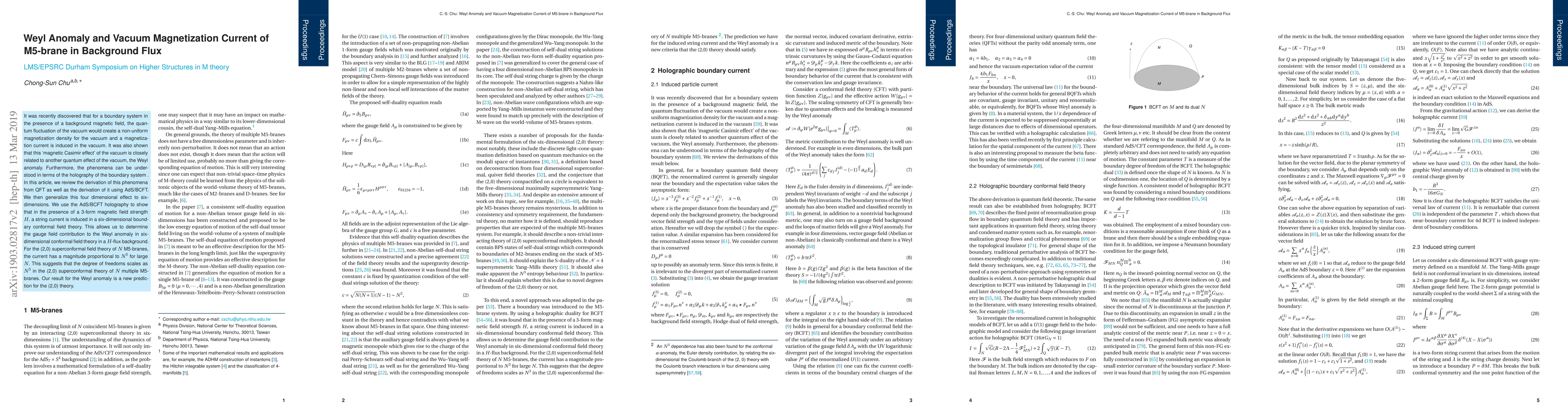 It was recently discovered that for a boundary system in the presence of a background magnetic field, the quantum fluctuation of the vacuum would create a non-uniform magnetization density for the vacuum and a magnetization current is induced in the vacuum. It was also shown that this magnetic Casimir effect of the vacuum is closely related to another quantum effect of the vacuum, the Weyl anomaly. Furthermore, the phenomena can be understood in terms of the holography of the boundary system. In this article, we review the derivation of this phenomena from QFT as well as the derivation of it using AdS/BCFT. We then generalize this four dimensional effect to six-dimensions. We use the AdS/BCFT holography to show that in the presence of a 3-form magnetic field strength $H$, a string current is induced in a six-dimensional boundary conformal field theory. This allows us to determine the gauge field contribution to the Weyl anomaly in six-dimensional conformal field theory in a $H$-flux background. For the (2,0) superconformal field theory of $N$ M5-branes, the current has a magnitude proportional to $N^3$ for large $N$. This suggests that the degree of freedoms scales as $N^3$ in the (2,0) superconformal theory of $N$ multiple M5-branes. Our result for the Weyl anomaly is a new prediction for the (2,0) theory.