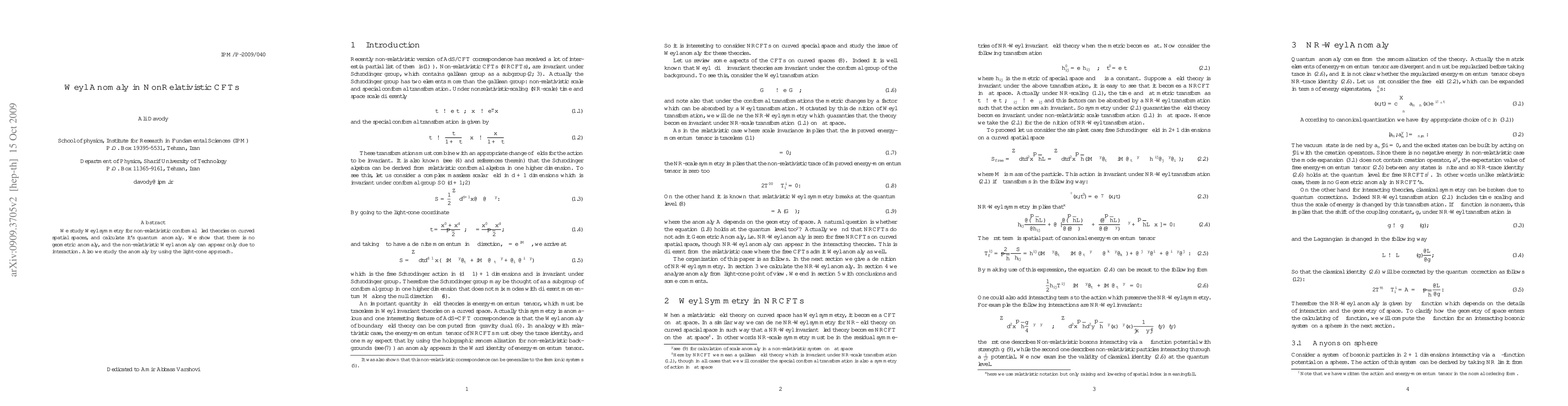 Summary: This paper investigates the Weyl symmetry in non-relativistic conformal field theories on curved spaces, demonstrating that while no geometric anomaly exists, a quantum Weyl anomaly can arise from interactions. The study also employs a light-cone approach to analyze the anomaly.