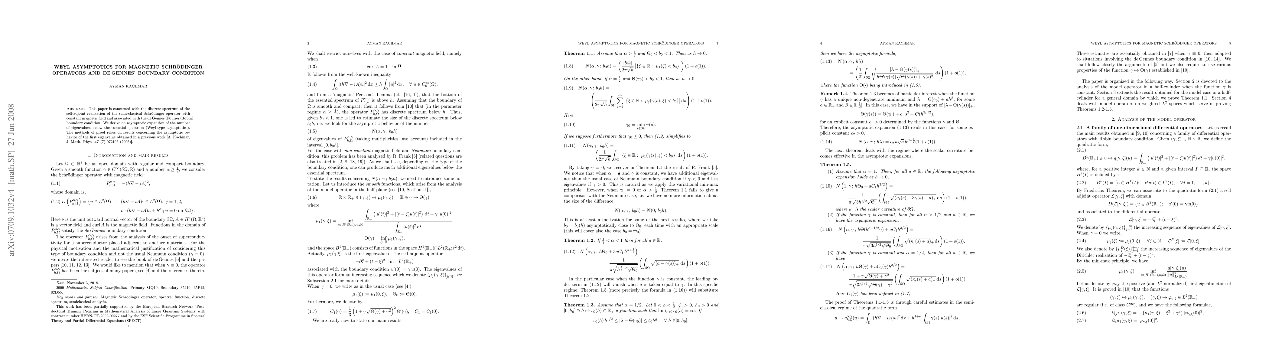 This paper investigates the discrete spectrum of magnetic Schrödinger operators under a constant magnetic field and de Gennes boundary conditions, deriving Weyl asymptotics for the number of eigenvalues below the essential spectrum. The proof leverages prior results on the asymptotic behavior of the first eigenvalue from a related study.