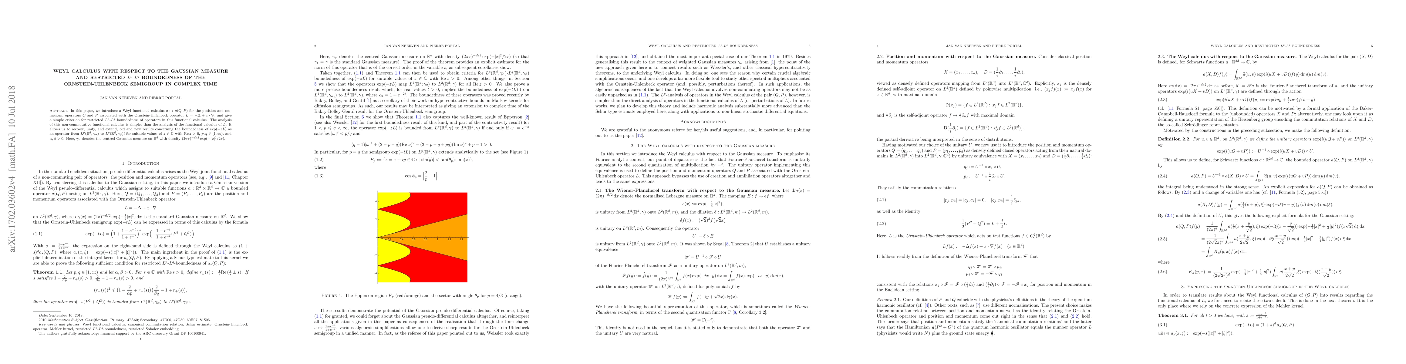 This paper develops a Weyl functional calculus for the position and momentum operators linked to the Ornstein-Uhlenbeck operator, providing a criterion for restricted $L^p$-$L^q$ boundedness. It simplifies the analysis and extends results on the boundedness of $\exp(-zL)$ in complex time.