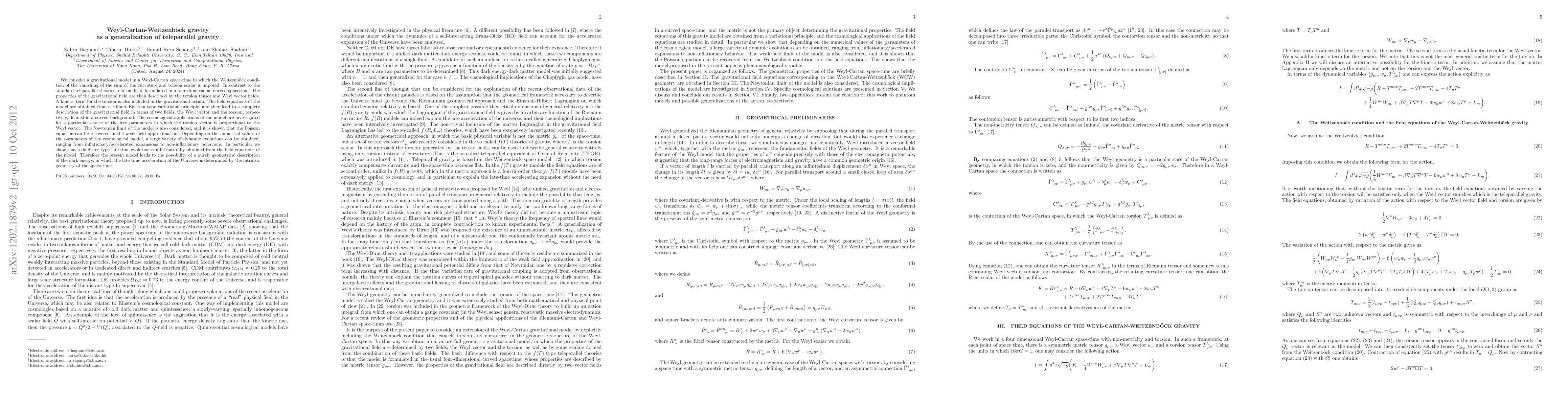This paper proposes a gravitational model in Weyl-Cartan space-time incorporating Weitzenböck's condition and a torsion kinetic term, leading to field equations describing gravity via the Weyl vector and torsion. It explores cosmological applications, showing diverse dynamic evolutions, including a de Sitter phase, suggesting a geometrical origin for dark energy.