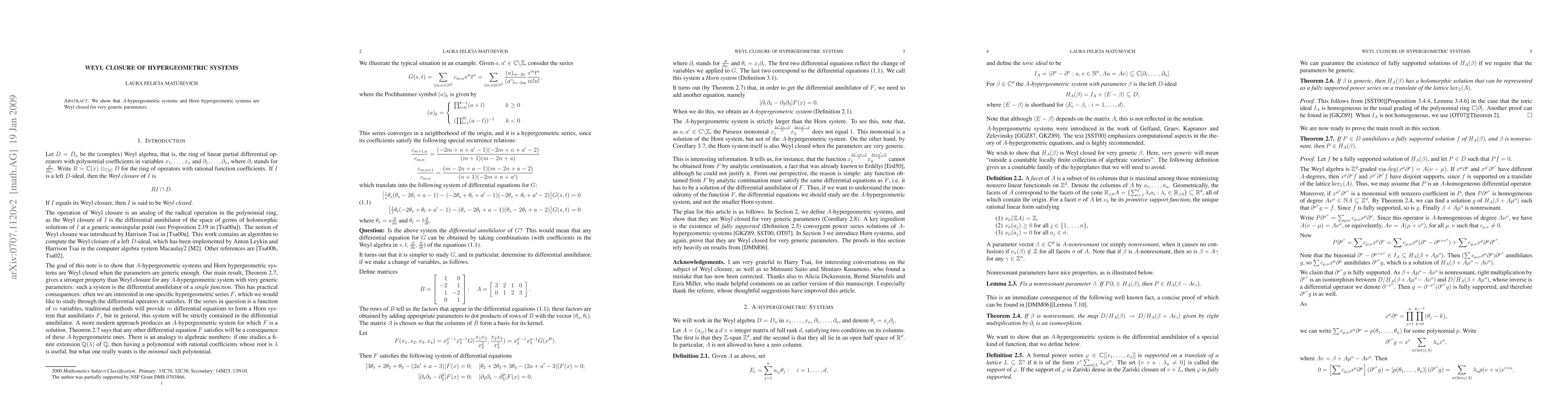 A-hypergeometric systems and Horn hypergeometric systems are Weyl closed for very generic parameters, meaning they remain solvable under specific parameter conditions.