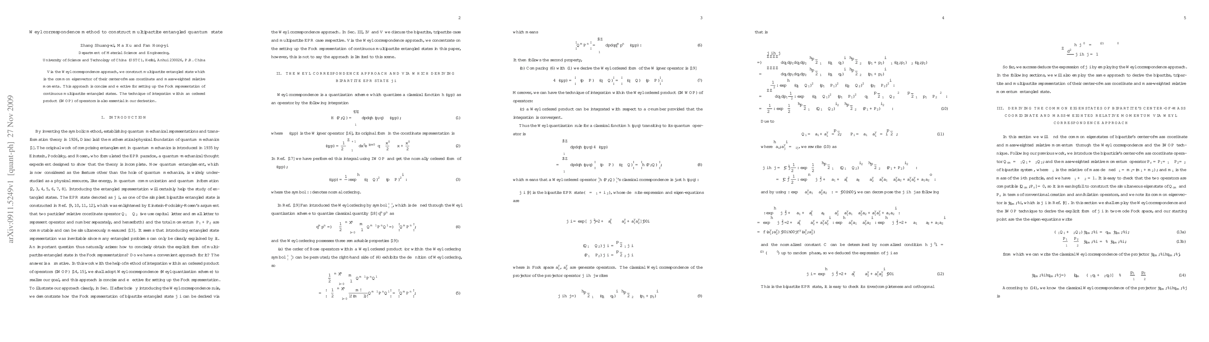 Researchers used Weyl correspondence to create a method for constructing multipartite entangled quantum states, enabling the Fock representation of continuous states. This approach is concise and effective for setting up complex entangled states.