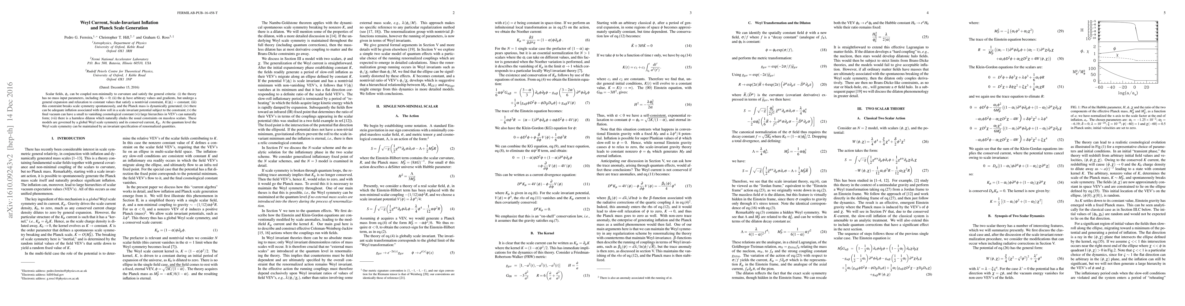 Scalar fields, $\phi_i$ can be coupled non-minimally to curvature and satisfy the general criteria: (i) the theory has no mass input parameters, including the Planck mass; (ii) the $\phi_i$ have arbitrary values and gradients, but undergo a general expansion and relaxation to constant values that satisfy a nontrivial constraint, $K(\phi_i) =$ constant; (iii) this constraint breaks scale symmetry spontaneously, and the Planck mass is dynamically generated; (iv) there can be adequate inflation associated with slow roll in a scale invariant potential subject to the constraint; (v) the final vacuum can have a small to vanishing cosmological constant (vi) large hierarchies in vacuum expectation values can naturally form; (vii) there is a harmless dilaton which naturally eludes the usual constraints on massless scalars. These models are governed by a global Weyl scale symmetry and its conserved current, $K_\mu$ . At the quantum level the Weyl scale symmetry can be maintained by an invariant specification of renormalized quantities.