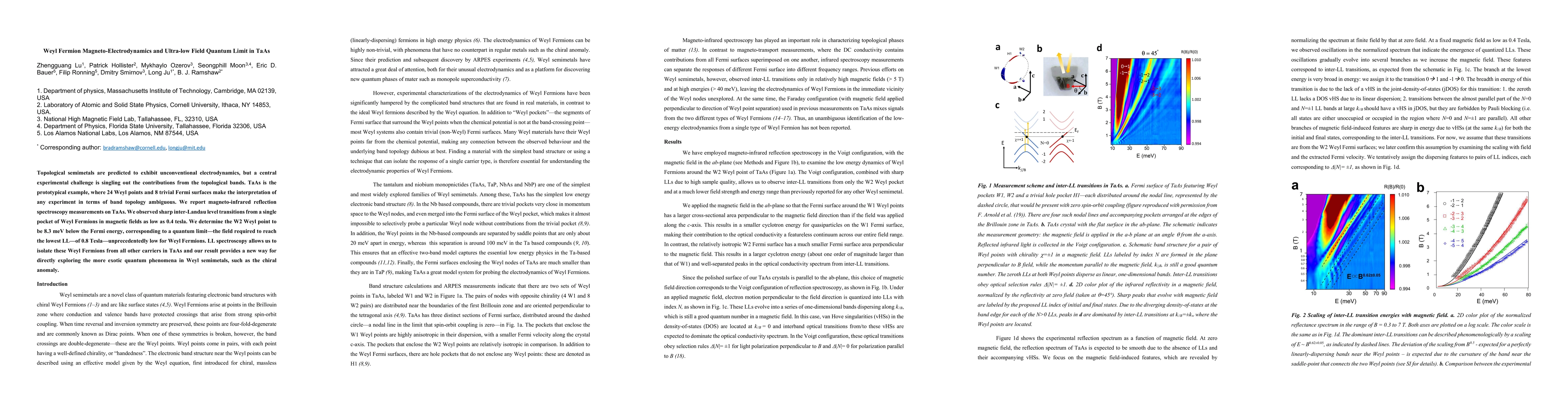 Topological semimetals are predicted to exhibit unconventional electrodynamics, but a central experimental challenge is singling out the contributions from the topological bands. TaAs is the prototypical example, where 24 Weyl points and 8 trivial Fermi surfaces make the interpretation of any experiment in terms of band topology ambiguous. We report magneto-infrared reflection spectroscopy measurements on TaAs. We observed sharp inter-Landau level transitions from a single pocket of Weyl Fermions in magnetic fields as low as 0.4 tesla. We determine the W2 Weyl point to be 8.3 meV below the Fermi energy, corresponding to a quantum limit - the field required to reach the lowest LL - of 0.8 Tesla - unprecedentedly low for Weyl Fermions. LL spectroscopy allows us to isolate these Weyl Fermions from all other carriers in TaAs and our result provides a new way for directly exploring the more exotic quantum phenomena in Weyl semimetals, such as the chiral anomaly.
