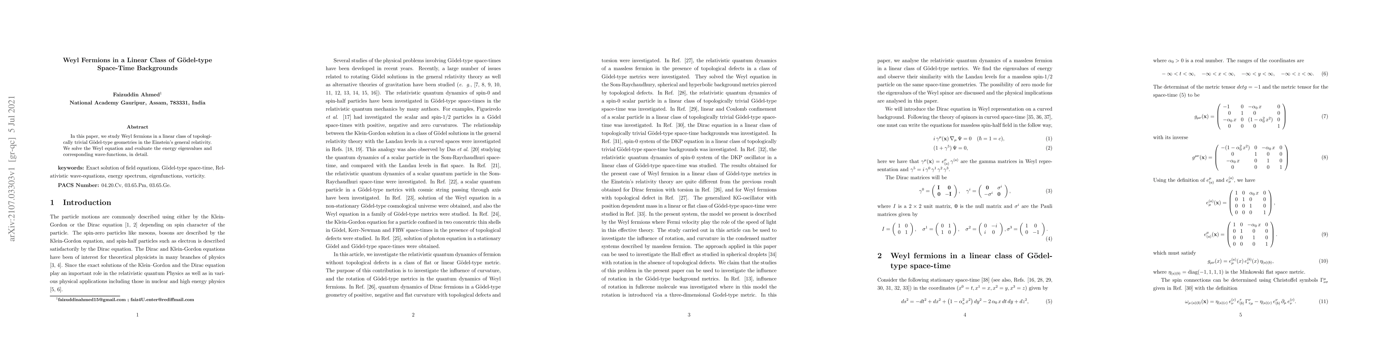 This paper investigates Weyl fermions in topologically trivial G\"odel-type space-time backgrounds, solving the Weyl equation to determine energy eigenvalues and associated wave functions in these geometries. The findings provide insights into the behavior of fermions in non-Euclidean space-times.