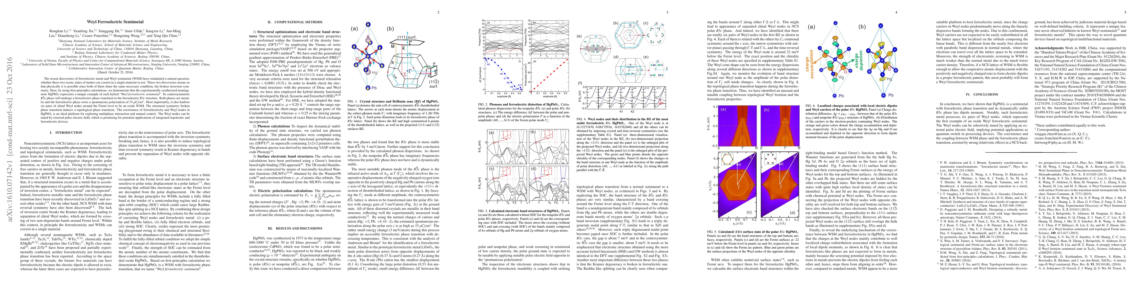 The paper demonstrates that HgPbO$_3$ is a unique Weyl ferroelectric semimetal, combining ferroelectricity and Weyl semimetal characteristics. The material exhibits a topological phase transition and tunable Weyl nodes, promising for integrated topotronic and ferroelectric devices.