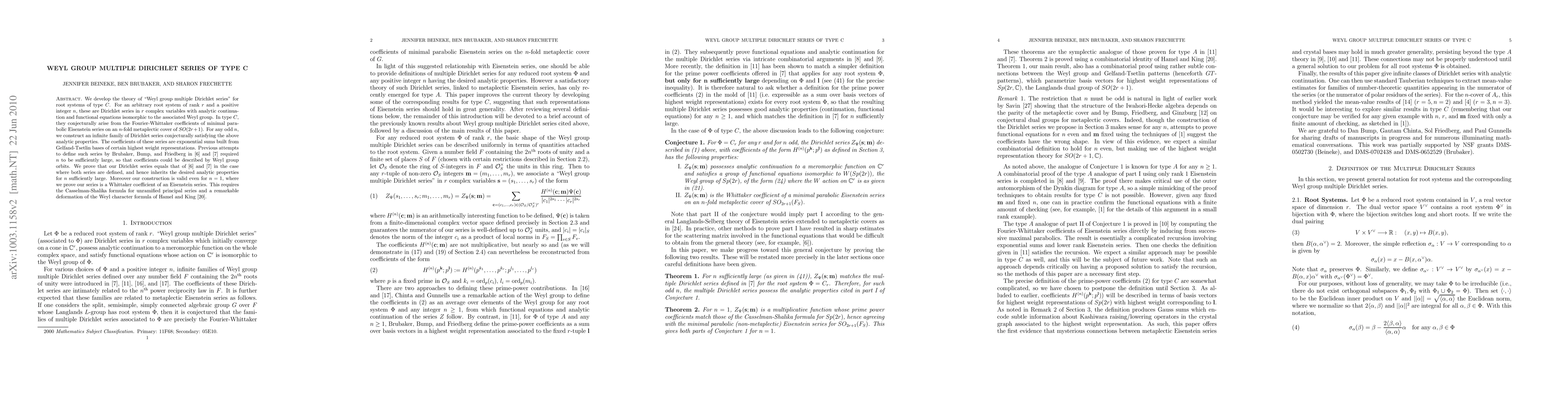 We develop the theory of Weyl group multiple Dirichlet series for root systems of type C. For an arbitrary root system of rank r and a positive integer n, these are Dirichlet series in r complex variables with analytic continuation and functional equations isomorphic to the associated Weyl group. In type C, they conjecturally arise from the Fourier-Whittaker coefficients of minimal parabolic Eisenstein series on an n-fold metaplectic cover of SO(2r+1). For any odd n, we construct an infinite family of Dirichlet series conjecturally satisfying the above analytic properties. The coefficients of these series are exponential sums built from Gelfand-Tsetlin bases of certain highest weight representations. Previous attempts to define such series by Brubaker, Bump, and Friedberg in [6] and [7] required n to be sufficiently large, so that coefficients could be described by Weyl group orbits. We demonstrate that our construction agrees with that of [6] and [7] in the case where both series are defined, and hence inherits the desired analytic properties for n sufficiently large. Moreover our construction is valid even for n=1, where we prove our series is a Whittaker coefficient of an Eisenstein series. This requires the Casselman-Shalika formula for unramified principal series and a remarkable deformation of the Weyl character formula of Hamel and King [20].