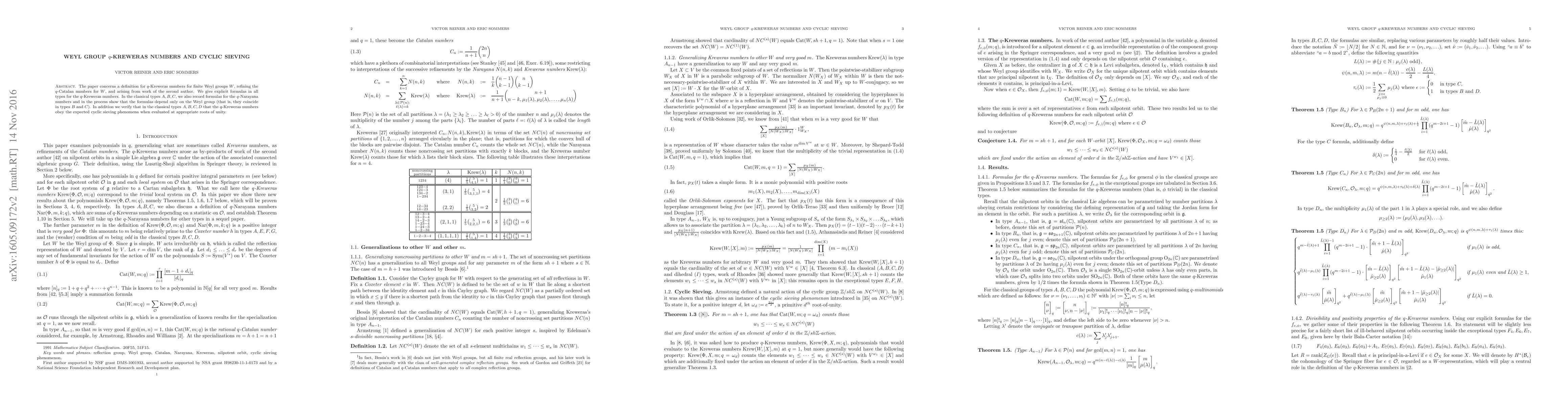 This paper defines $q$-Kreweras numbers for finite Weyl groups, providing explicit formulas for all types and showing they coincide in types $B$ and $C$. It also verifies cyclic sieving phenomena for these numbers in classical types $A, B, C, D$ at specific roots of unity.