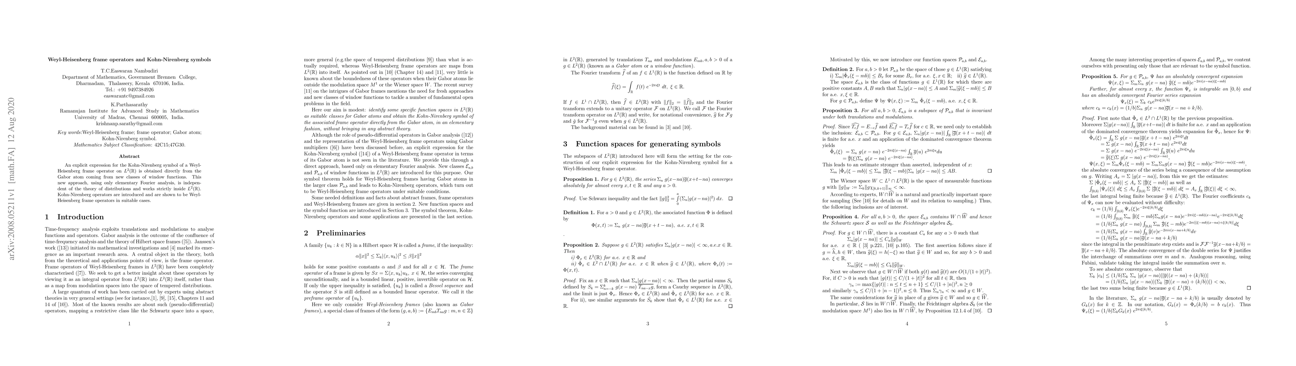 An explicit expression for the Kohn-Nirenberg symbol of a Weyl- Heisenberg frame operator on $L^2(\mathbb{R})$ is obtained directly from the Gabor atom coming from new classes of window functions. This new approach, using only elementary Fourier analysis, is independent of the theory of distributions and works strictly inside $L^2(\mathbb{R})$. Kohn-Nirenberg operators are introduced and are shown to be Weyl-Heisenberg frame operators in suitable cases.
