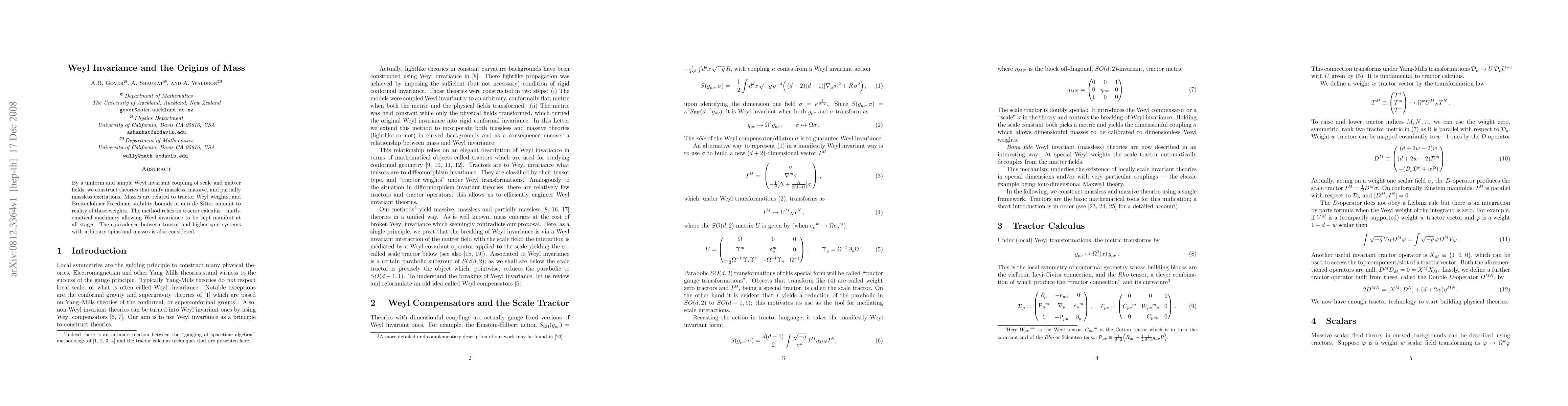 This paper constructs unified theories using Weyl invariant coupling to unify massless, massive, and partially massless excitations, with masses linked to tractor Weyl weights. The method leverages tractor calculus to maintain Weyl invariance and explores equivalences with higher spin systems.