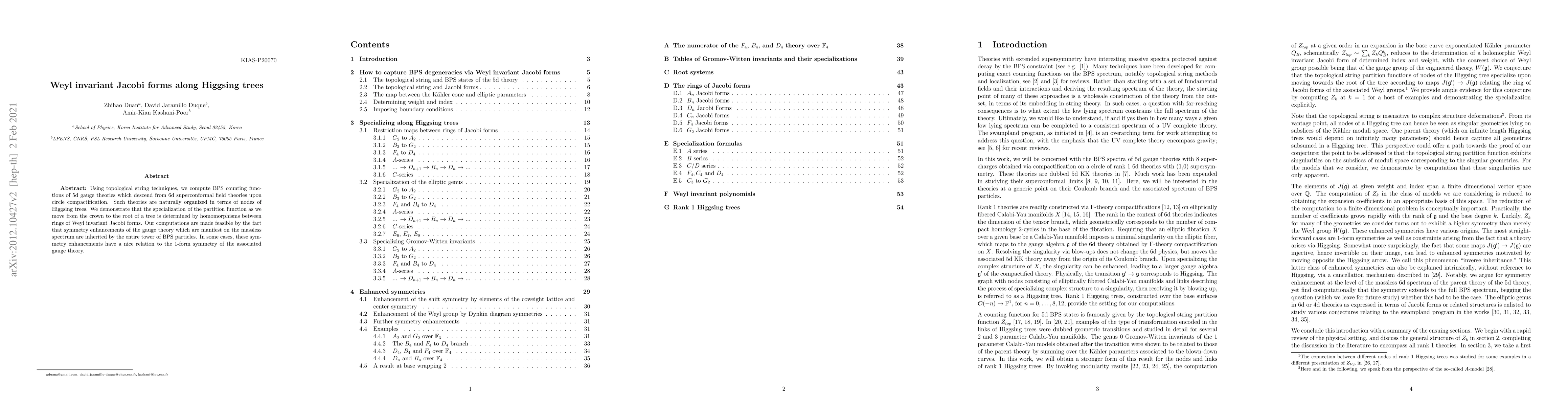 Using topological string techniques, we compute BPS counting functions of 5d gauge theories which descend from 6d superconformal field theories upon circle compactification. Such theories are naturally organized in terms of nodes of Higgsing trees. We demonstrate that the specialization of the partition function as we move from the crown to the root of a tree is determined by homomorphisms between rings of Weyl invariant Jacobi forms. Our computations are made feasible by the fact that symmetry enhancements of the gauge theory which are manifest on the massless spectrum are inherited by the entire tower of BPS particles. In some cases, these symmetry enhancements have a nice relation to the 1-form symmetry of the associated gauge theory.