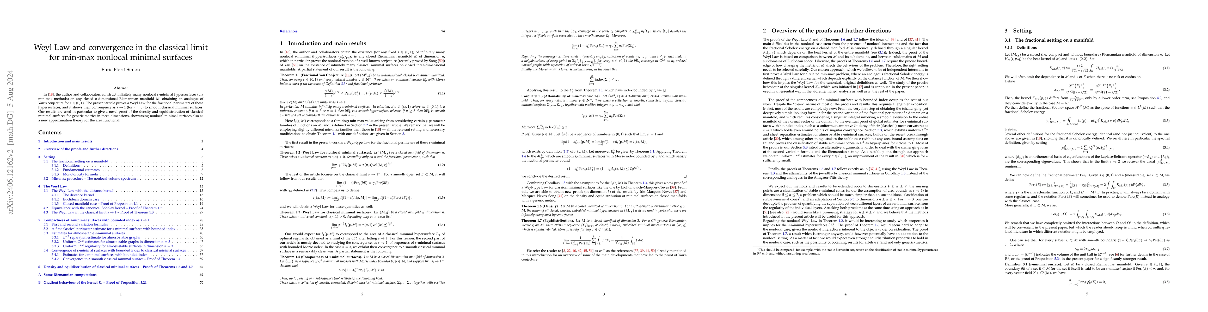 This paper constructs infinitely many nonlocal minimal hypersurfaces via min-max methods and proves a Weyl Law for their fractional perimeters. It demonstrates the convergence of these surfaces to classical minimal surfaces in the classical limit, providing a novel proof for their density and equidistribution in three dimensions.