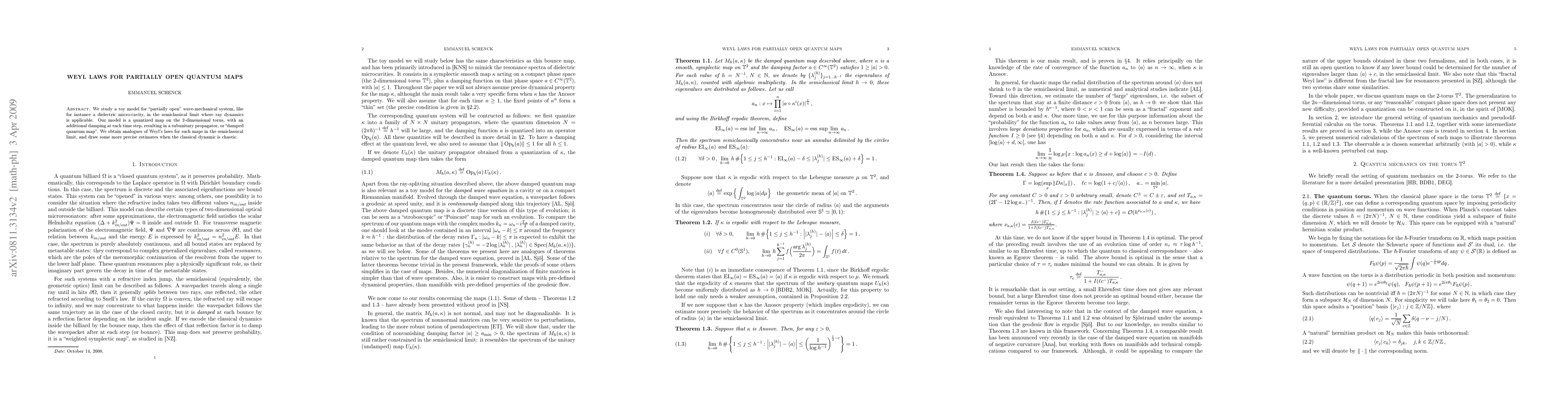 We study a toy model for "partially open" wave-mechanical system, like for instance a dielectric micro-cavity, in the semiclassical limit where ray dynamics is applicable. Our model is a quantized map on the 2-dimensional torus, with an additional damping at each time step, resulting in a subunitary propagator, or "damped quantum map". We obtain analogues of Weyl's laws for such maps in the semiclassical limit, and draw some more precise estimates when the classical dynamic is chaotic.
