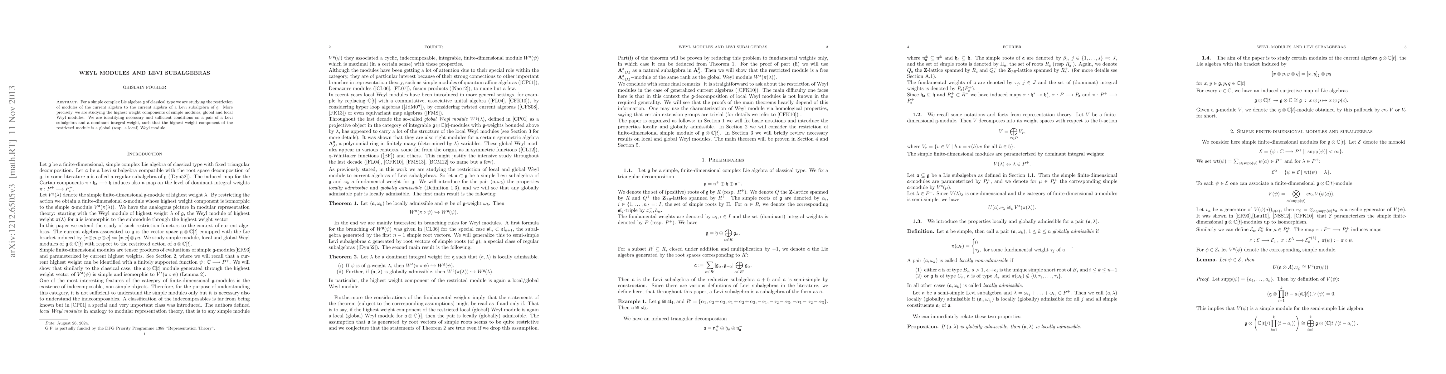 The research employs a detailed analysis of Weyl modules and Levi subalgebras for simple complex Lie algebras of finite rank and classical type, using triangular decompositions and focusing on simple Levi subalgebras associated with closed subsets of roots.