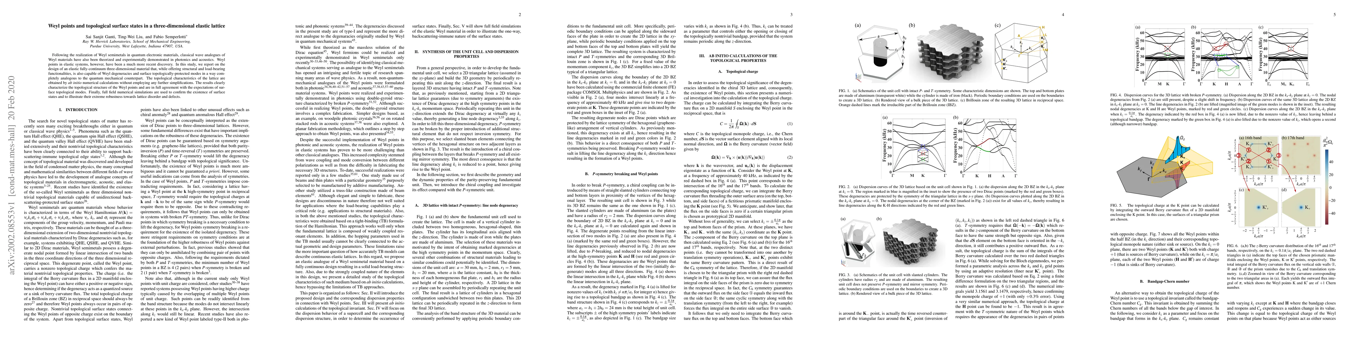 Researchers have discovered a 3D elastic lattice that exhibits Weyl points and topologically-protected surface states, similar to quantum mechanical counterparts, through ab initio numerical calculations and field simulations.