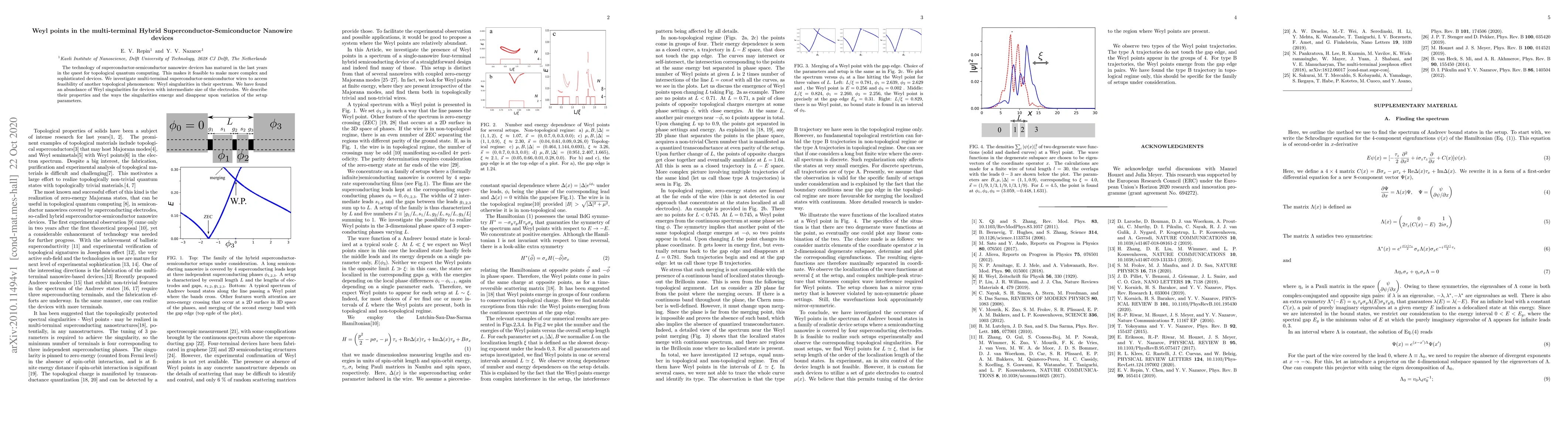 The technology of superconductor-semiconductor nanowire devices has matured in the last years in the quest for topological quantum computing. This makes it feasible to make more complex and sophisticated devices. We investigate multi-terminal superconductor-semiconductor wires to access feasibility of another topological phenomenon: Weyl singularities in their spectrum. We have found an abundance of Weyl singularities for devices with intermediate size of the electrodes. We describe their properties and the ways the singularities emerge and disappear upon variation of the setup parameters.