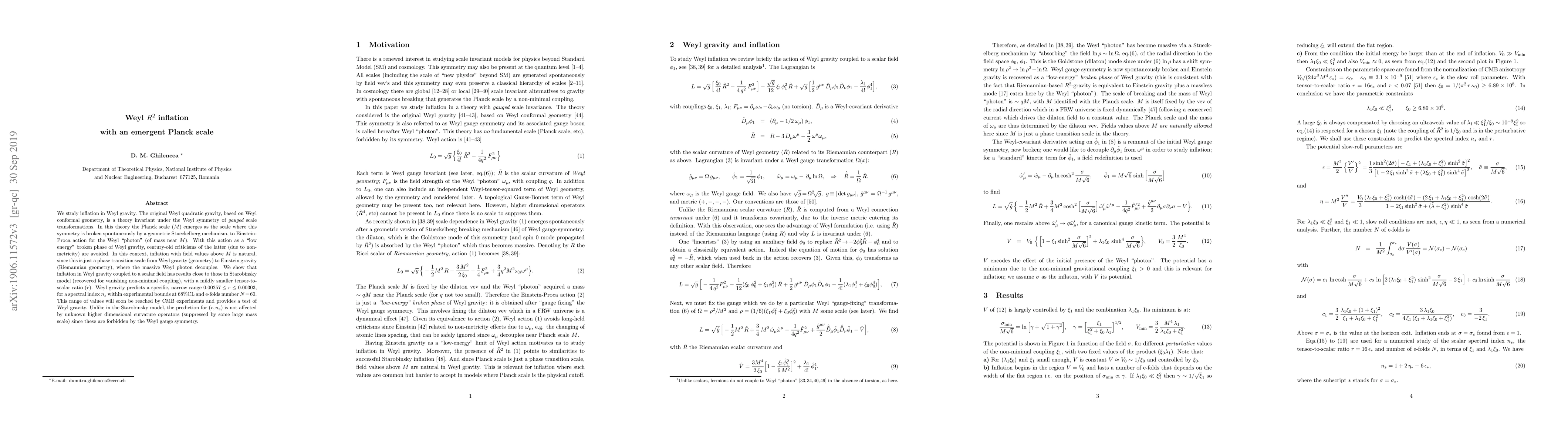 This paper explores inflation within Weyl gravity, showing that a spontaneous symmetry breaking leads to an emergent Planck scale and naturally transitions from Weyl to Einstein gravity. The results align closely with the Starobinsky model, predicting a specific range for the tensor-to-scalar ratio ($r$) that future CMB experiments may test, with predictions unaffected by higher-dimensional curvature operators due to Weyl gauge symmetry.