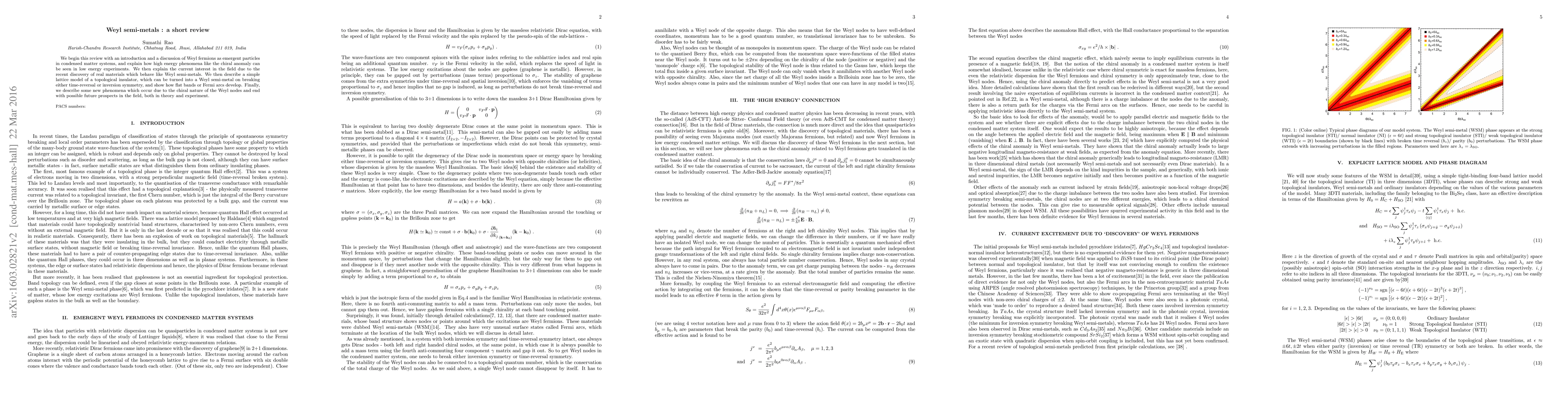 This paper reviews Weyl semi-metals, discussing how Weyl fermions exhibit high-energy phenomena in condensed matter systems, and highlights recent discoveries of materials exhibiting these properties. It also explores a lattice model for topological insulators turned into Weyl semi-metals by symmetry breaking, and describes new phenomena due to the chiral nature of Weyl nodes.