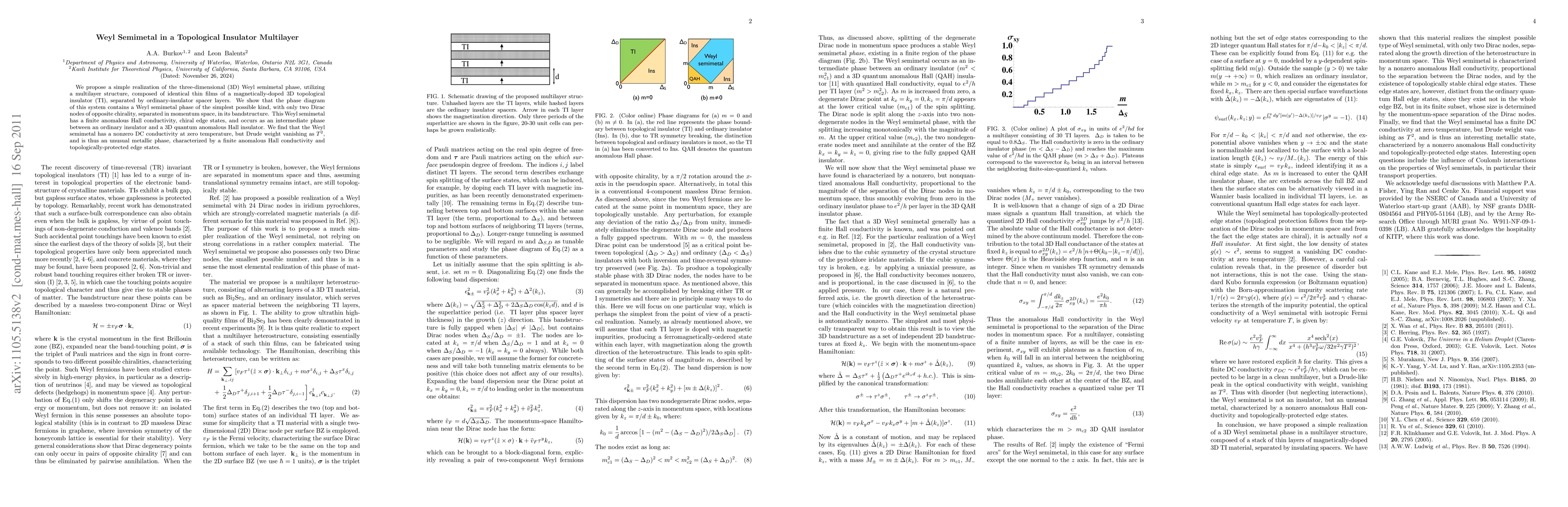 This paper proposes a 3D Weyl semimetal phase in a multilayer of magnetically-doped topological insulator films, featuring only two chirality-opposed Dirac nodes. The Weyl semimetal exhibits finite anomalous Hall conductivity and topologically-protected edge states, occurring between an ordinary insulator and a quantum anomalous Hall insulator.