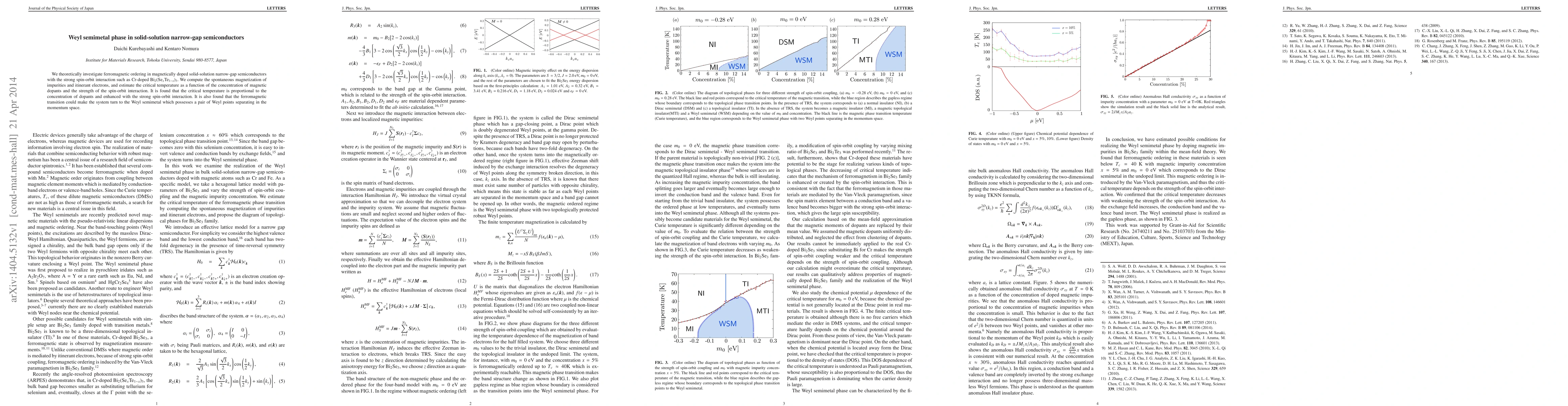 This paper investigates the ferromagnetic ordering in magnetically doped solid-solution narrow-gap semiconductors with strong spin-orbit interaction, finding that the critical temperature is proportional to dopant concentration and enhanced by strong spin-orbit interaction. The study concludes that a ferromagnetic transition can induce a Weyl semimetal phase with Weyl points in the momentum space.