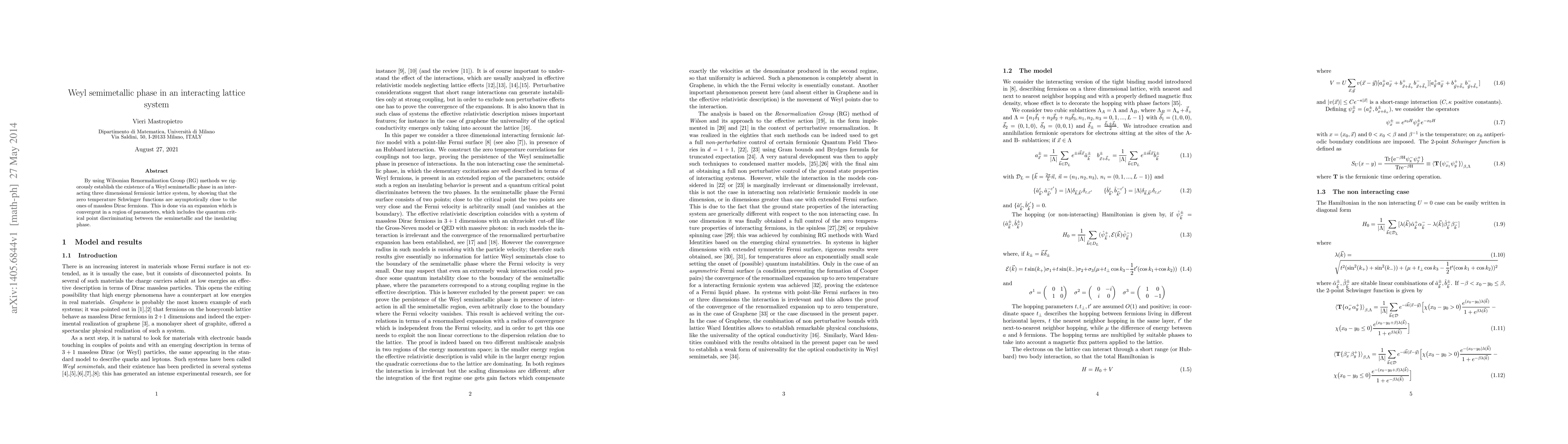 Researchers used Wilsonian Renormalization Group methods to prove the existence of a Weyl semimetallic phase in a 3D fermionic lattice system, showing it behaves like massless Dirac fermions at zero temperature.
