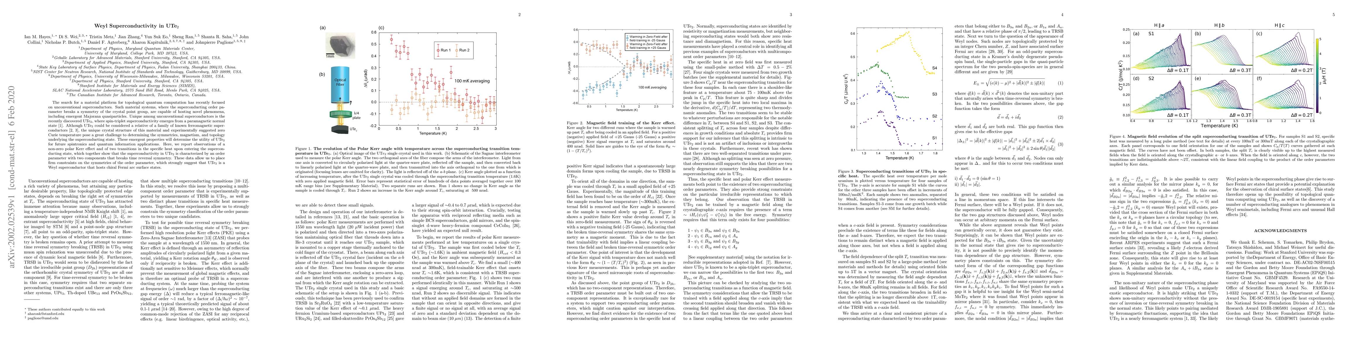 This paper reports the discovery of Weyl superconductivity in UTe2, characterized by a non-zero polar Kerr effect and two specific heat transitions, indicating an order parameter that breaks time reversal symmetry and suggests UTe2 hosts chiral Fermi arc surface states, potentially useful for future quantum information applications.