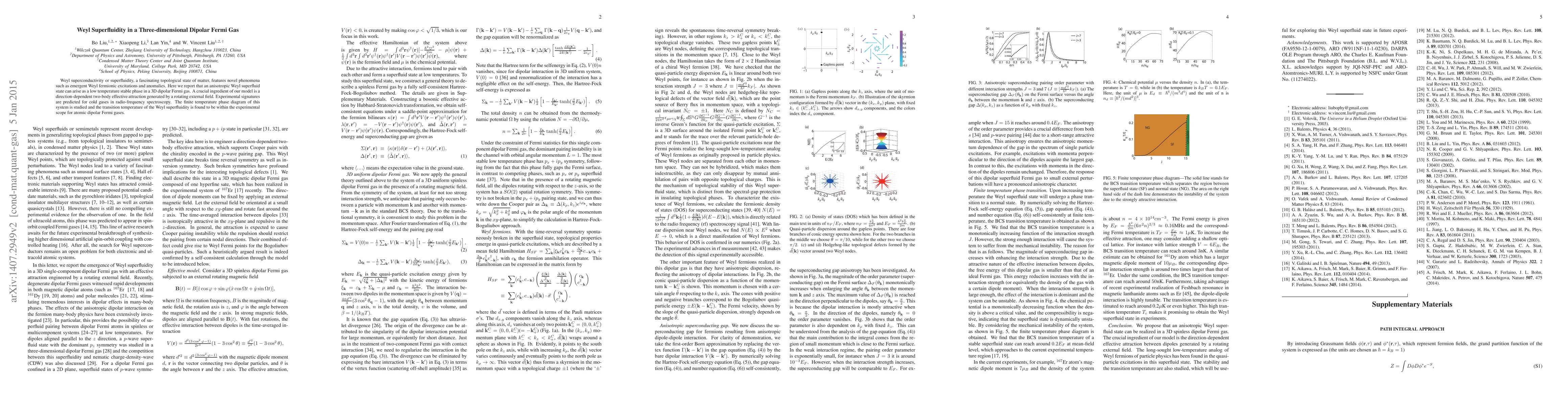 This paper explores Weyl superfluidity in a three-dimensional dipolar Fermi gas, demonstrating that a stable anisotropic Weyl superfluid phase can emerge at low temperatures. The study predicts experimental signatures in radio-frequency spectroscopy and finds the transition temperature feasible for current atomic dipolar Fermi gas experiments.