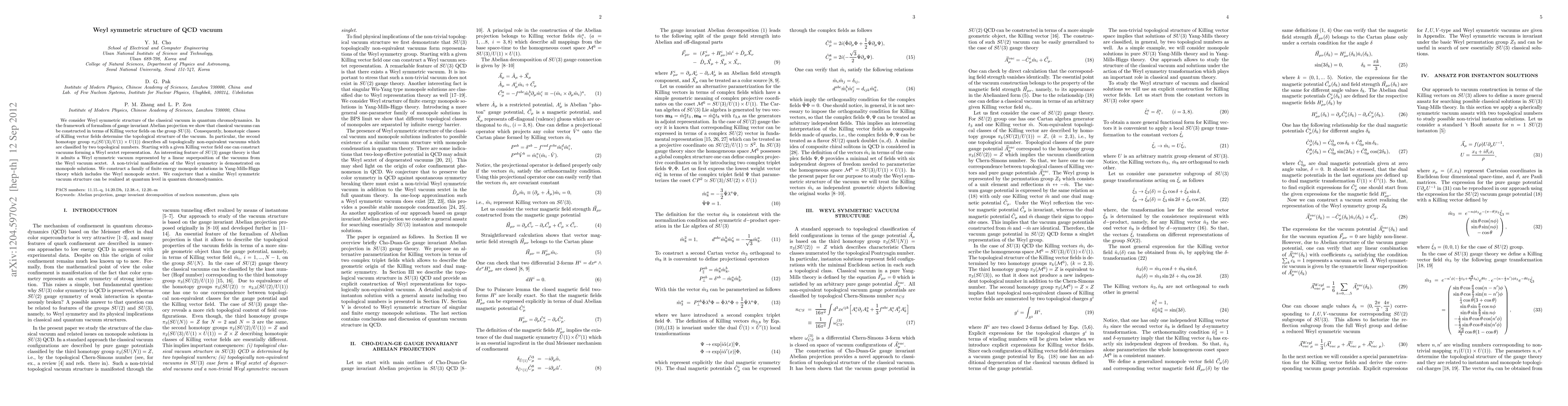 This work extends previous research on Weyl symmetry in QCD by applying it to the classical vacuum structure and monopole solutions, revealing a Weyl symmetric vacuum represented by a linear superposition of six vacuums from the Weyl vacuum sextet.