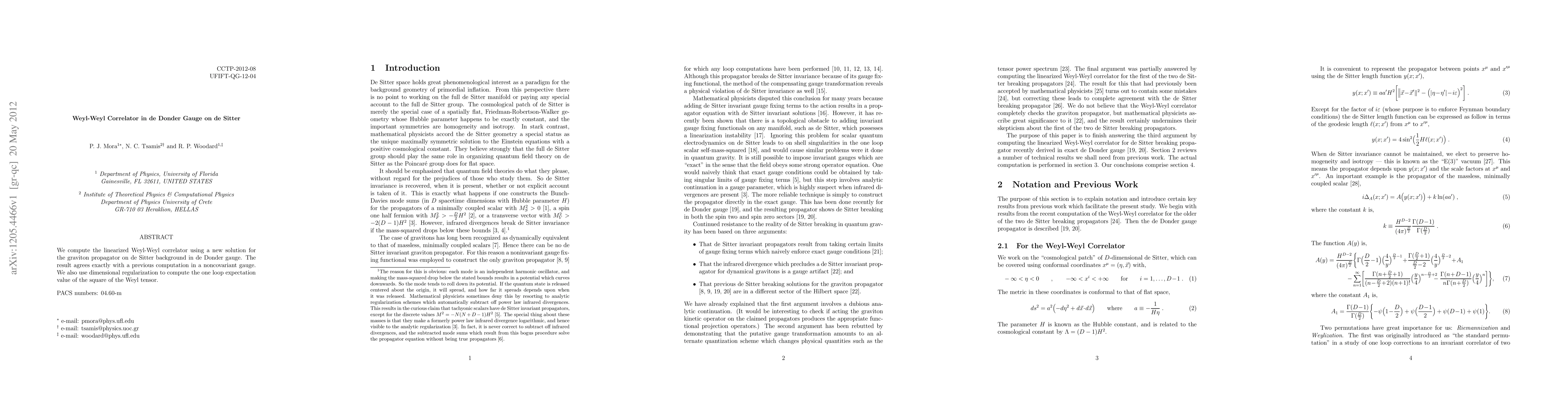 Summary: This paper computes the Weyl-Weyl correlator in de Donder gauge on de Sitter using a new graviton propagator solution, confirming previous results from noncovariant gauges, and employs dimensional regularization to evaluate the one-loop expectation value of the square of the Weyl tensor.