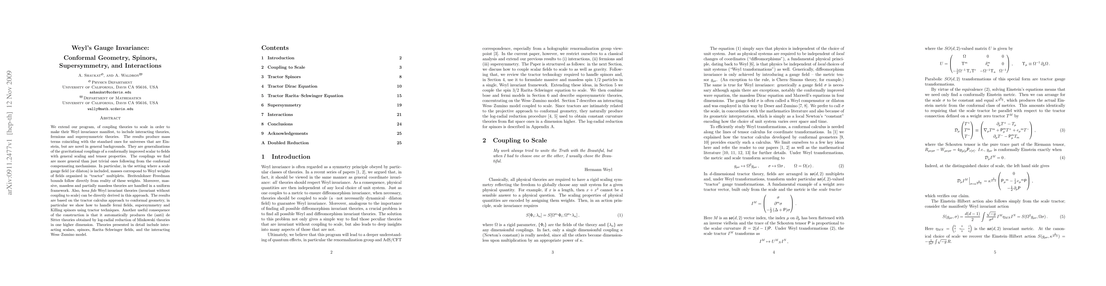 We extend our program, of coupling theories to scale in order to make their Weyl invariance manifest, to include interacting theories, fermions and supersymmetric theories. The results produce mass terms coinciding with the standard ones for universes that are Einstein, but are novel in general backgrounds. They are generalizations of the gravitational couplings of a conformally improved scalar to fields with general scaling and tensor properties. The couplings we find are more general than just trivial ones following from the conformal compensating mechanisms. In particular, in the setting where a scale gauge field (or dilaton) is included, masses correspond to Weyl weights of fields organized in ``tractor'' multiplets. Breitenlohner--Freedman bounds follow directly from reality of these weights. Moreover, massive, massless and partially massless theories are handled in a uniform framework. Also, bona fide Weyl invariant theories (invariant without coupling to scale) can be directly derived in this approach. The results are based on the tractor calculus approach to conformal geometry, in particular we show how to handle fermi fields, supersymmetry and Killing spinors using tractor techniques. Another useful consequence of the construction is that it automatically produces the (anti) de Sitter theories obtained by log-radial reduction of Minkowski theories in one higher dimension. Theories presented in detail include interacting scalars, spinors, Rarita--Schwinger fields, and the interacting Wess--Zumino model.
