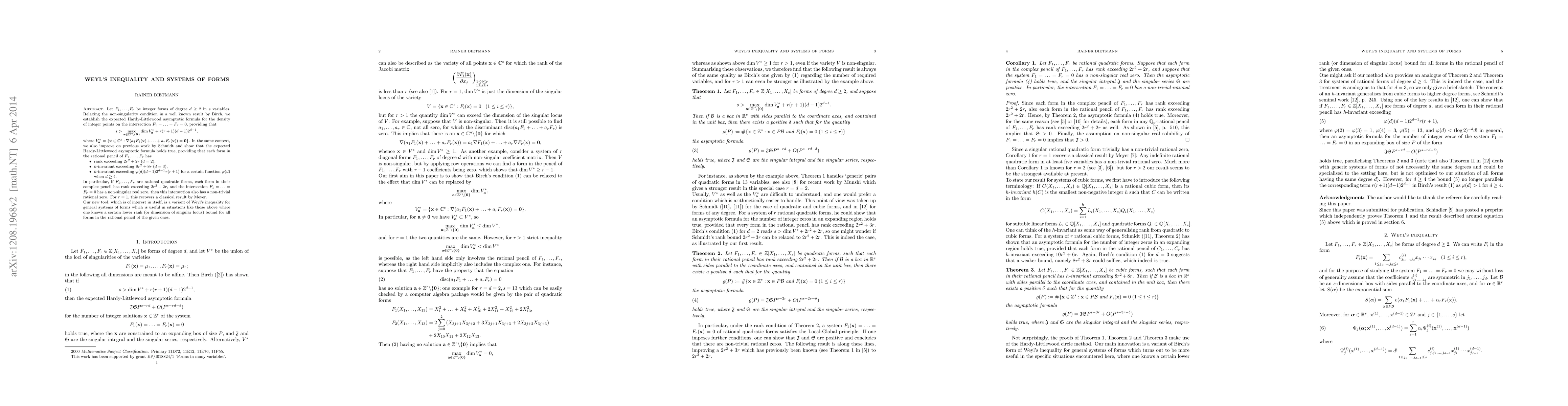 Weyl's inequality is adapted for systems of forms to establish the Hardy-Littlewood asymptotic formula for the density of integer zeros under relaxed rank conditions, extending the analysis to higher-degree forms and modifying Birch's non-singularity condition.