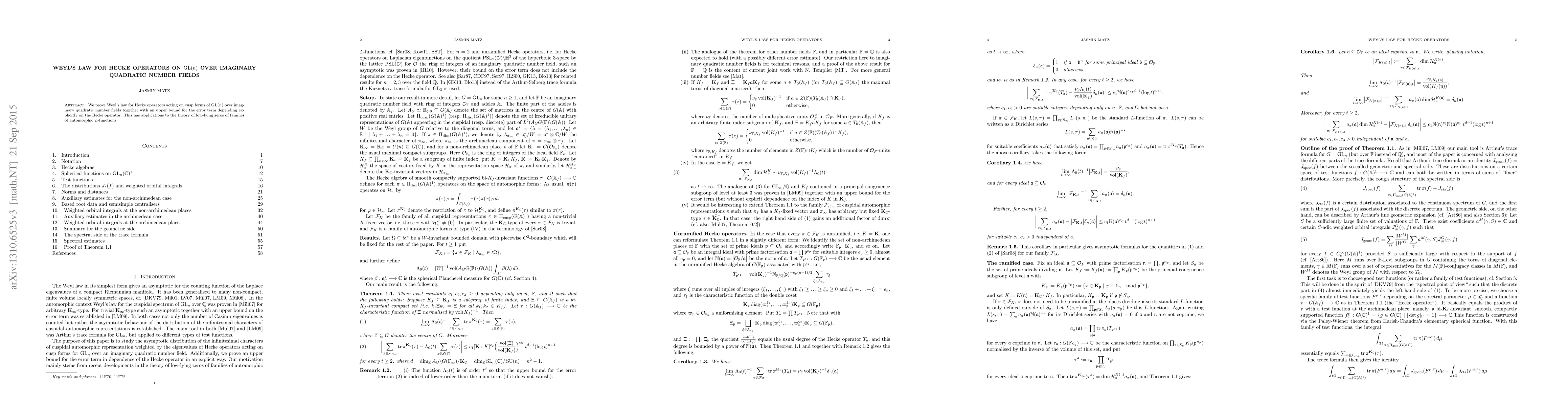 We prove a mean value theorem for the traces of Hecke operators acting on cusp forms of GL(n) over imaginary quadratic number fields together with an upper bound for the error term depending explicitly on the Hecke operator.