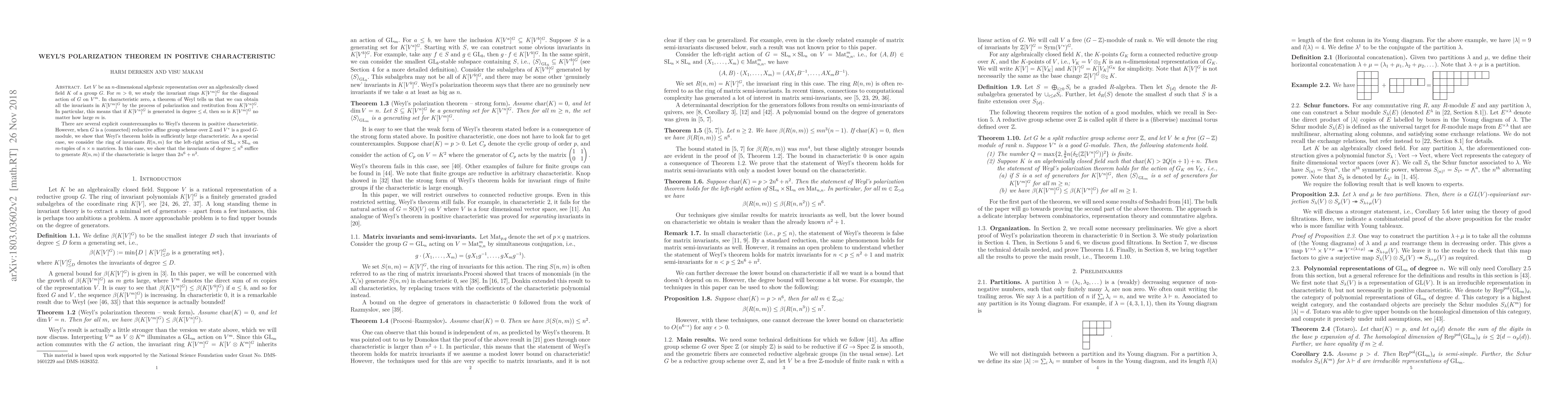This paper studies Weyl's polarization theorem in positive characteristic, demonstrating that while counterexamples exist, the theorem holds for reductive affine group schemes over $\mathbb{Z}$ when the characteristic is sufficiently large. Specifically, it shows that the invariants of degree $\leq n^6$ generate the ring of invariants for the action of ${\rm SL}_n \times {\rm SL}_n$ on $m$-tuples of $n \times n$ matrices if the characteristic exceeds $2n^6 + n^2$.
