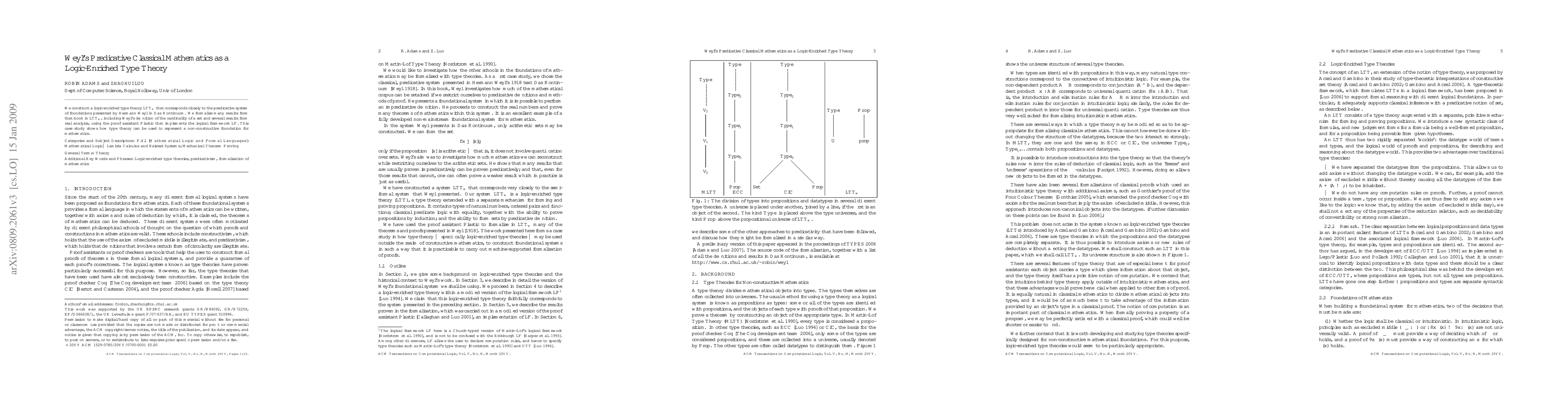This paper presents a logic-enriched type theory (LTTW) mirroring Hermann Weyl's predicative mathematics system, formalizing Weyl's set cardinality definition and real analysis results using Plastic, a proof assistant based on LF. It demonstrates type theory's applicability in representing non-constructive mathematical foundations.