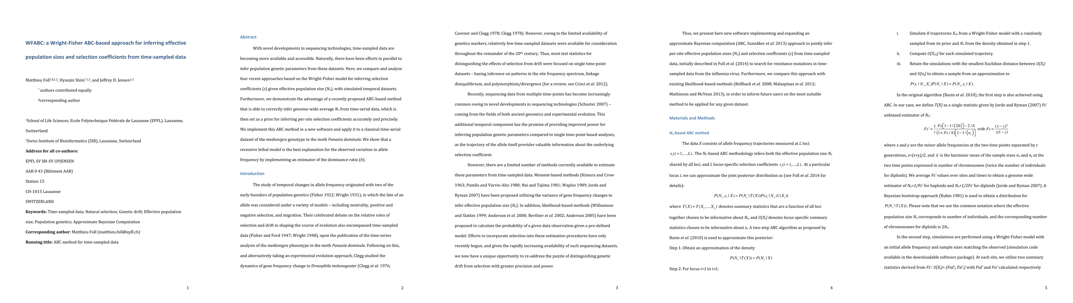 This paper introduces WFABC, an ABC-based method for inferring effective population sizes and selection coefficients from time-sampled genetic data. It demonstrates the method's accuracy and precision compared to other approaches, using a dataset from the moth Panaxia dominula, and concludes that a recessive lethal model best explains the observed allele frequency variation.