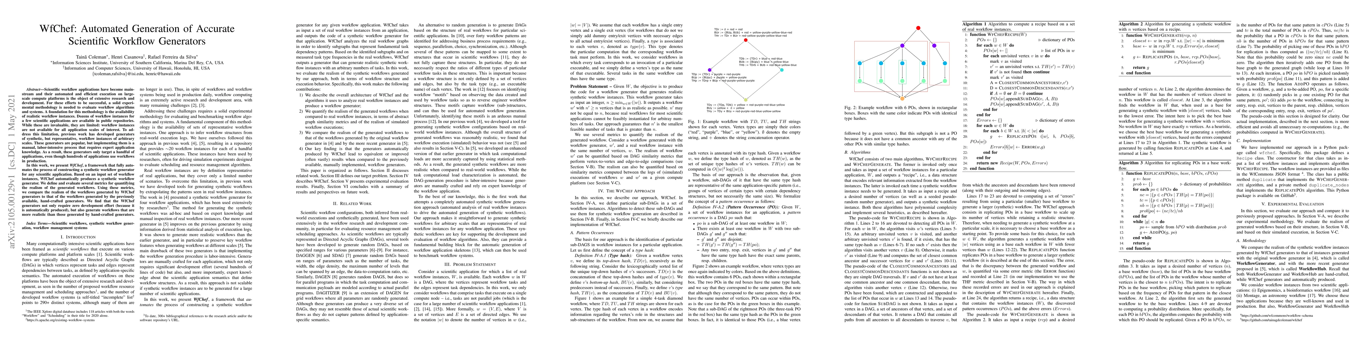 WfChef automates the creation of synthetic scientific workflow generators, eliminating the need for manual effort and expert application knowledge. It produces highly realistic workflow instances for any scientific application, outperforming hand-crafted generators in terms of realism.