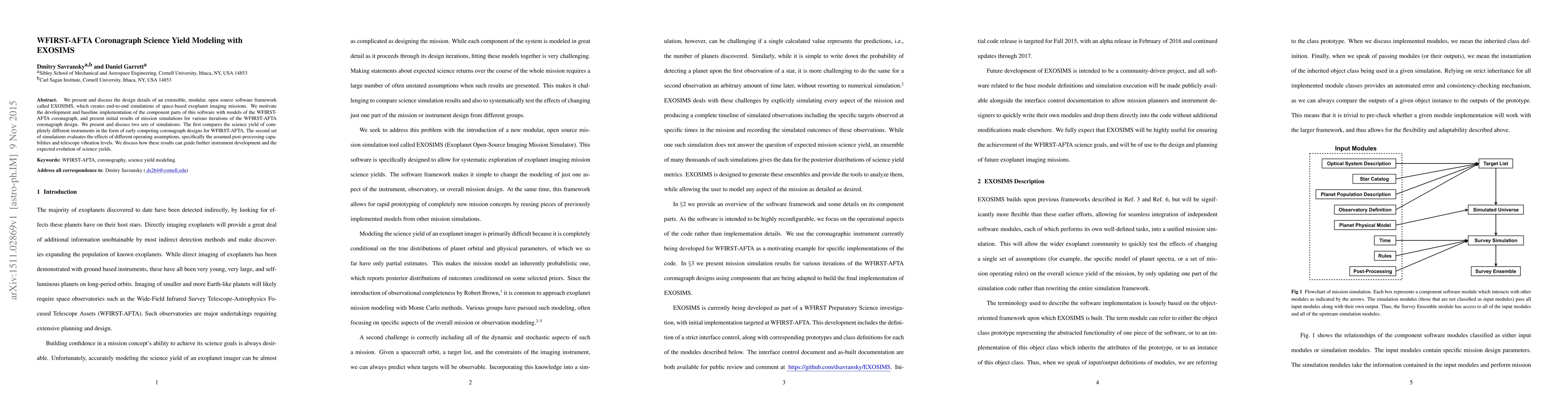 This paper introduces EXOSIMS, a software framework for simulating space-based exoplanet missions, using WFIRST-AFTA coronagraph models. It presents simulations comparing different coronagraph designs and evaluates the impact of operating assumptions on science yield, guiding future instrument development.