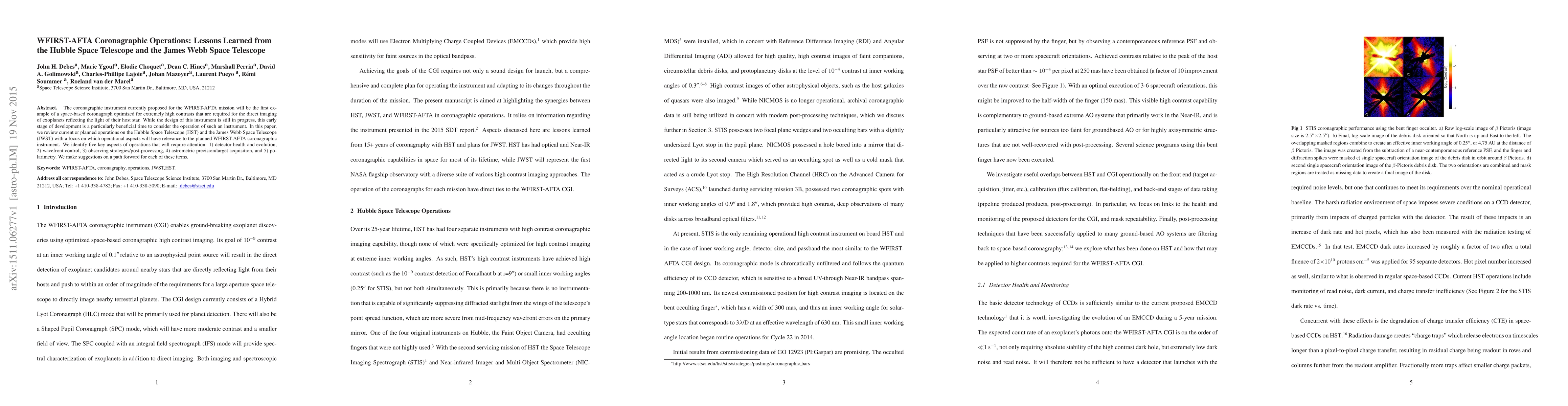 This paper reviews operational aspects of the Hubble and James Webb Space Telescopes to inform the development of the WFIRST-AFTA coronagraphic instrument, focusing on detector health, wavefront control, observing strategies, astrometric precision, and polarimetry. It proposes actionable steps to address these key operational aspects for the new instrument.