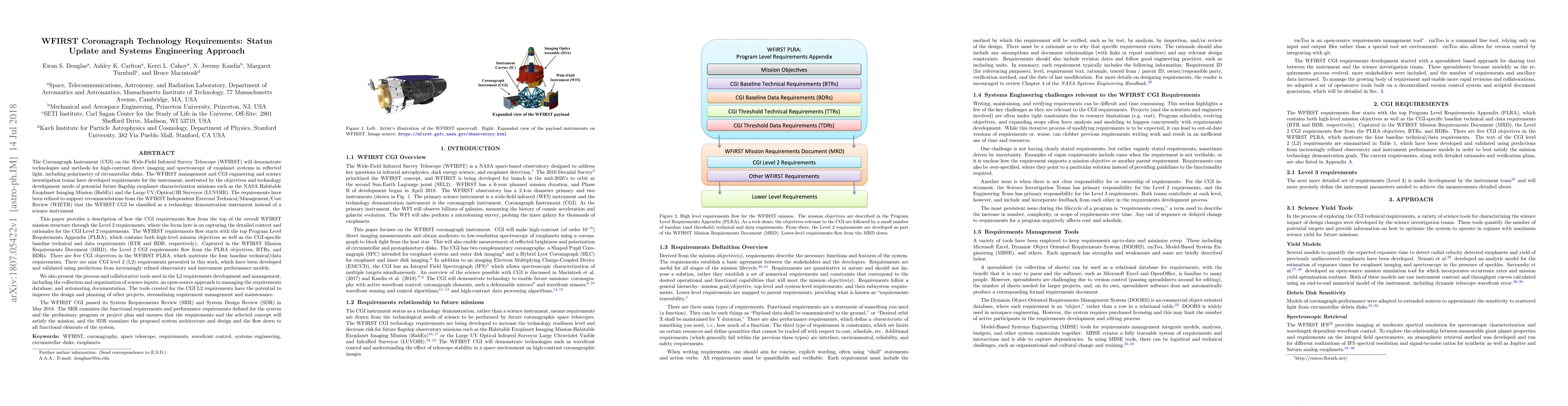 The WFIRST Coronagraph Instrument (CGI) aims to demonstrate technologies for exoplanet imaging and spectroscopy, refined to support future flagship missions. The paper details the requirements flow from top-level mission objectives to CGI-specific Level 2 requirements, emphasizing collaborative tools for requirement management and potential application to other projects.