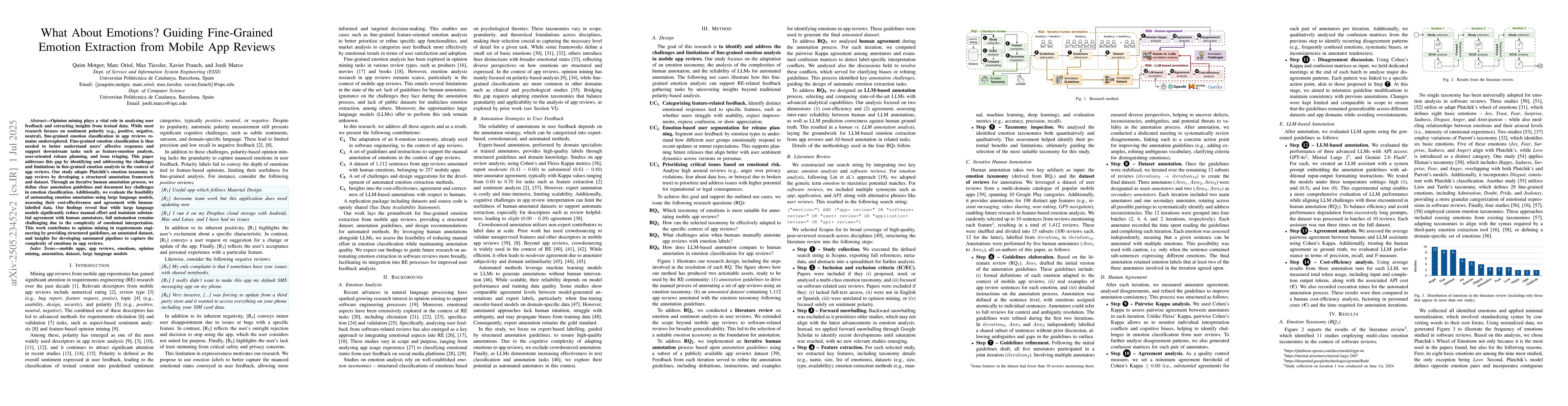 A study develops a structured annotation framework to fine-grained emotion extraction from app reviews, revealing that large language models can significantly reduce manual effort but struggle with full automation due to emotional complexity.