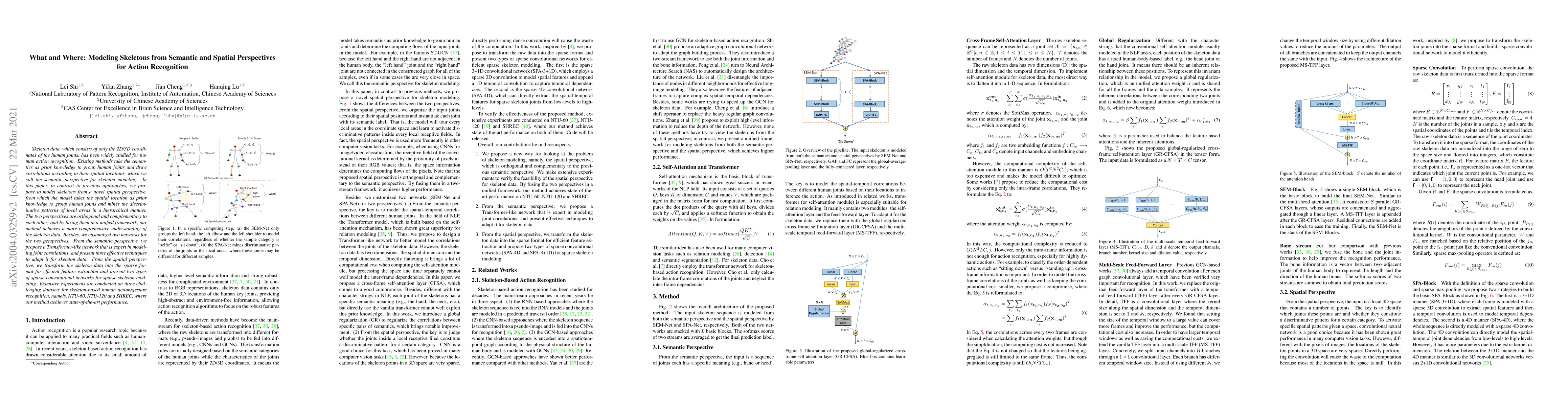 Skeleton data, which consists of only the 2D/3D coordinates of the human joints, has been widely studied for human action recognition. Existing methods take the semantics as prior knowledge to group human joints and draw correlations according to their spatial locations, which we call the semantic perspective for skeleton modeling. In this paper, in contrast to previous approaches, we propose to model skeletons from a novel spatial perspective, from which the model takes the spatial location as prior knowledge to group human joints and mines the discriminative patterns of local areas in a hierarchical manner. The two perspectives are orthogonal and complementary to each other; and by fusing them in a unified framework, our method achieves a more comprehensive understanding of the skeleton data. Besides, we customized two networks for the two perspectives. From the semantic perspective, we propose a Transformer-like network that is expert in modeling joint correlations, and present three effective techniques to adapt it for skeleton data. From the spatial perspective, we transform the skeleton data into the sparse format for efficient feature extraction and present two types of sparse convolutional networks for sparse skeleton modeling. Extensive experiments are conducted on three challenging datasets for skeleton-based human action/gesture recognition, namely, NTU-60, NTU-120 and SHREC, where our method achieves state-of-the-art performance.