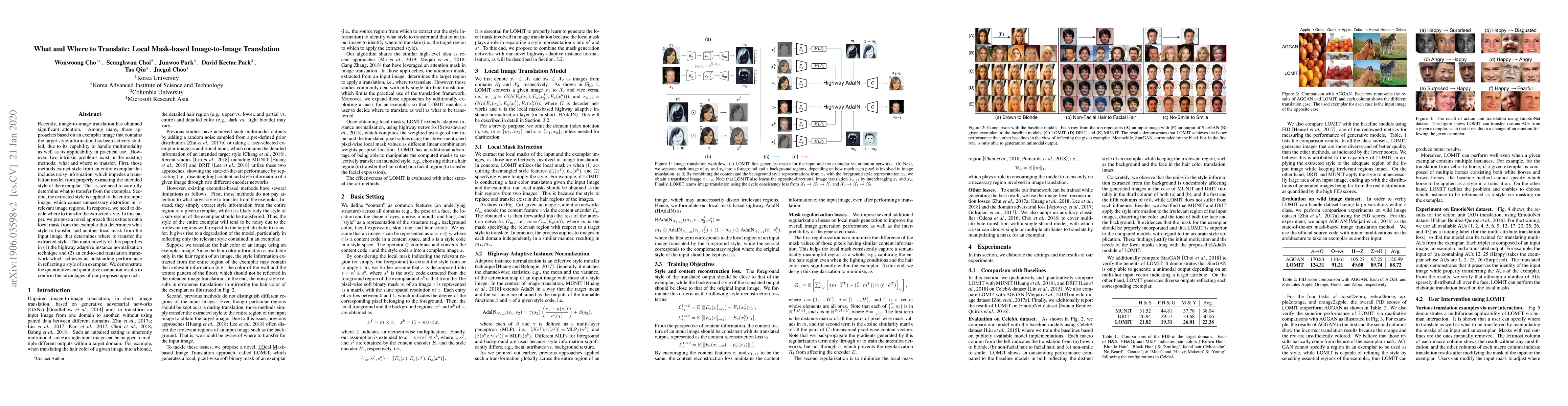 This paper proposes a novel approach to image-to-image translation that extracts local masks to determine what style to transfer from an exemplar and where to apply it to the input image, achieving outstanding performance in reflecting the style of an exemplar.