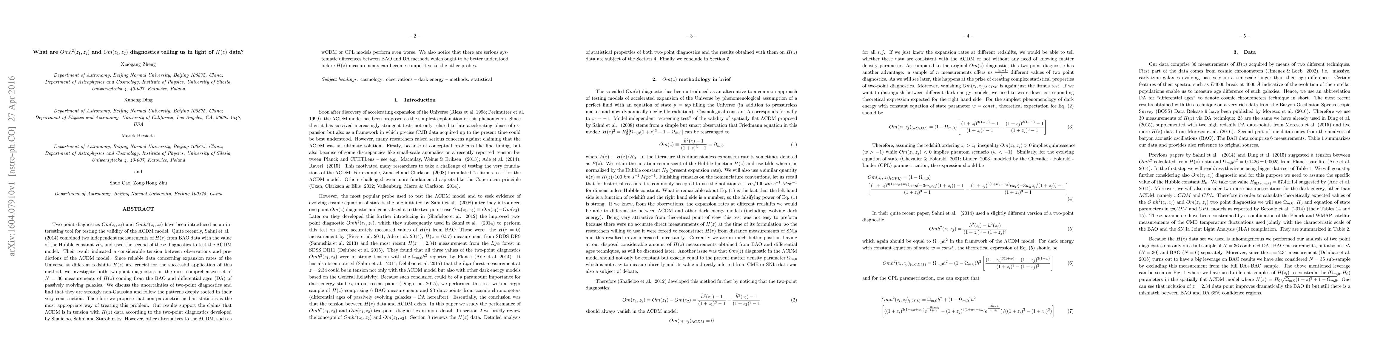 Two-point diagnostics $Om(z_i,z_j)$ and $Omh^2(z_i,z_j)$ have been introduced as an interesting tool for testing the validity of the $\Lambda$CDM model. Quite recently, Sahni, Shafieloo $\&$ Starobinsky (2014) combined two independent measurements of $H(z)$ from BAO data with the value of the Hubble constant $H_0$, and used the second of these diagnostics to test the $\Lambda$CDM model. Their result indicated a considerable tension between observations and predictions of the $\Lambda$CDM model. Since reliable data concerning expansion rates of the Universe at different redshifts $H(z)$ are crucial for the successful application of this method, we investigate both two-point diagnostics on the most comprehensive set of $N=36$ measurements of $H(z)$ coming from the BAO and differential ages (DA) of passively evolving galaxies. We discuss the uncertainties of two-point diagnostics and find that they are strongly non-Gaussian and follow the patterns deeply rooted in their very construction. Therefore we propose that non-parametric median statistics is the most appropriate way of treating this problem. Our results support the claims that $\Lambda$CDM is in tension with $H(z)$ data according to the two-point diagnostics developed by Shafieloo, Sahni and Starobinsky. However, other alternatives to the $\Lambda$CDM, such as wCDM or CPL models perform even worse. We also notice that there are serious systematic differences between BAO and DA methods which ought to be better understood before $H(z)$ measurements can become competitive to the other probes.